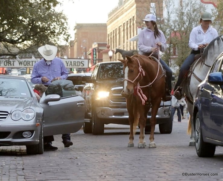 ONLINE AUCTION Place your bids at www.PlatinumEquineAuction.com Starting Bid $3500 Auction ends April 6th, 2025 Need a new saddle? Check out White Rock Saddles on our website or Facebook! Abe is a super fun horse – just the right size at 14.2 and thick made, he seems bigger than he is because he’s long legged and big bodied!!! He is only 6 years old and has his whole life in front of him. He has a great personality, extremely kind and willing and he loves to have a job. He is the same horse if you turn him out for a month, or if you ride them every day. He is content to go anywhere in a group if you ride out, he’ll ride next to a horse, behind all the horses, or he will lead the pack confidently! He rides on a big loose rein – and always has his ears up looking around, excited to go see the next thing there is to see. He hops right on the trailer and hauls quietly, and ties, saddles, bridles, and is great with his feet for the farrier. He is extremely honest and kind – our camera lady kinda panicked and bailed shooting because she was terrified… but check out the video where his loping bosal becomes untied -RIGHT ON the side of the highway!!! He just hung out and stopped while the rider reached up and re-tied it. He is a sweet, fun, kind horse. He has enough athletic ability and handle to go use on the ranch or would be great in the turn back pen – and he has been lightly started in the roping pen on both the head and the heel side. Abe just wears front shoes and his feet were just reset last week. His teeth were just done by our equine dentist two weeks ago, and he also had his sheath cleaned, his ears preemptively treated for ticks, and was dewormed at that time. He is in great shape, just a hair on the fat side, but is plenty fit enough to go right to work. He is an easy keeper and in good health. Watch his video, and to see additional videos, go to our website: BusterHorses.com or our Facebook page Buster Horses or call Ashley with Buster Horses 214-605-7174 for more info. Abe is located in Weatherford, TX – one hour from Dallas / Fort Worth International Airport. He is an easy day trip, or fun overnight trip to come and try out, from anywhere! We are experienced, knowledgeable sellers, and we can help with quickly arranging affordable shipping to any buyer’s location – we have experience shipping worldwide – including regularly to Hawaii, Canada, Mexico, Europe, and South Africa. Check our website for buyer reviews, more videos of Abe, additional info, etc: BusterHorses.com/Abe ONLINE AUCTION Place your bids at www.PlatinumEquineAuction.com Starting Bid $3500 Auction ends April 6th, 2025 Need a new saddle? Check out White Rock Saddles on our website or Facebook!