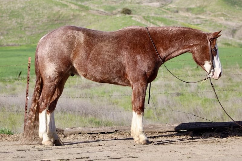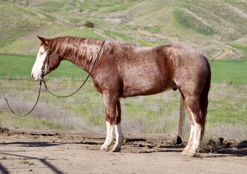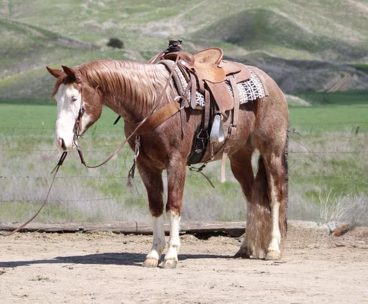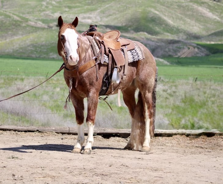 ONLINE AUCTION Place your bids at www.PlatinumEquineAuction.com Starting Bid $3500 Auction ends April 13th, 2025 Need a new saddle? Check out White Rock Saddles on our website or Facebook! Chrome is such a stunning horse! With those four high white socks and that beautiful bald face, he really stands out. His luxurious red roan coat shines in the sunlight, and his tail, which drags gracefully behind him, adds to his charm. At just six years old and standing at 15 hands, he’s not only gorgeous but also incredibly willing. He’s nicely broke, moves fluidly, and has that perfect headset that makes him a joy to ride. When he glides across the ground, it’s like watching poetry in motion. What I love about Chrome is his adventurous spirit. He’s curious yet cautious, making him easy to be around. Every day, he’s the same eager horse ready to please you. He thrives in cow work and would make a fantastic sorting horse. He’s been introduced to various obstacles like balls, tarps, and flags, and he handles them all with absolute confidence. Plus, he’s been ridden on busy roads and through vineyards, crossing railroad tracks without a second thought. It’s rare to find a horse like him, especially one that’s so versatile! Out on the trail, Chrome is a dream. He navigates all kinds of terrain with ease, crosses water without hesitation, and is comfortable whether he’s alone or with a group. He’s easy to clip, tie, and bathe, and loading him up for a trip is a breeze. If you’re looking for a horse that’s not just beautiful but also a true companion, Chrome is the one. This is a fantastic opportunity to make him a part of your life. If you’re interested, reach out to Dina at Longhorn Ranch at 831-537-1915, located in Paicines, CA. ONLINE AUCTION Place your bids at www.PlatinumEquineAuction.com Starting Bid $3500 Auction ends April 13th, 2025 Need a new saddle? Check out White Rock Saddles on our website or Facebook!