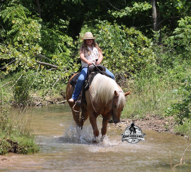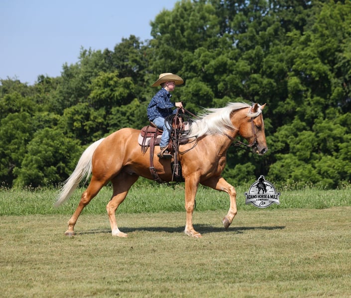 Cinco is consigned to the Best Of The West Horse Sale in Gladstone, NJ on September 26-27th. You can bid online or bid in person. There is a preview day before the sale or you can come ride him prior to the sale in Mt. Vernon, KY. Cinco is a 2019 reg AQHA, 15h, stout built, Golden Palomino, Gelding. He has enough color and personality to steal your heart! The best part about him, is that he is gentle and safe!!! The kids have ridden Cinco down the trails and he is going to take care of any rider that is setting on him! He will pack a nervous beginner safely across rocky areas, creeks, over deadfall, up/down steep slopes and he will ensure that they have the most enjoyable ride! Cinco has been ridden around the ranch, he has worked cows, he has roped and doctored sick ones at the feedlot too. Cinco has tracked the roping dummy on the head and heel side. He is a pleasure to ride as he lopes perfect circles on a draped/loose rein, he has a smooth jog, a good stop, spins a circle both ways and backs with ease. In addition to western riding, Cinco has been ridden English and has been over jumps. He has been ridden through town and is traffic safe! From jumps to ranch to trails Cinco can handle it all and will be a family favorite! For more info call 606-308-2461.