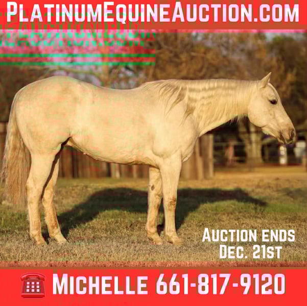 ONLINE AUCTION Place your bids at www.PlatinumEquineAuction.com Starting Bid $3500 Auction ends December 21st, 2025 Need a new saddle? Check out White Rock Saddles on our website or Facebook CHEDDAR — WHERE QUALITY, QUIETNESS & CLASS COME TOGETHER 6-Year-Old Palomino Gelding • 15.0 Hands • Refined • Reliable • Meet Cheddar, the kind of gelding that turns heads for his color and keeps them turned with his kindness. He’s a golden, polished gentleman with a heart as soft as his shine—steady, seasoned, and right in the sweet spot of his life. Cheddar has lived the real deal outdoor life. He’s been ridden across mountain ranges, hunted off of, and has packed gear through the quiet backcountry. He’s seasoned on long, week-long camping trips and knows how to travel big country with confidence and style. He crosses water, logs, bridges, brush, and terrain of every kind like he’s done it a thousand times—which he essentially has. Where most horses blink at traffic, Cheddar doesn’t even flick an ear. This gelding is as solid in town as he is on the trail. Ride him right down the street with cars buzzing past, trucks rolling by, and everyday commotion—it doesn’t rattle him. He’s been down Main Street, through neighborhoods, and into busy areas without a single worry. A horse equally comfortable under blue skies or streetlights is a rare one. Cheddar has been around cattle and shows every bit of promise to make a handy ranch horse. With his steady way of traveling and that level, thinking mind, he’s ready to step into more ranch work and look good doing it—because this gelding is built to impress. He’s been hauled from Oklahoma to Texas, through multiple National Parks, and has taken new scenery, new challenges, and new adventures all in stride. Cheddar unloads calm, rides off relaxed, and handles new places with class. Cheddar has more outside seasoning than arena miles, but he’s coming along beautifully. He’s learning his walk–trot–lope circles and gets smoother and more polished each time he steps in the arena. With his willingness and foundation, finishing him out will be easy. He’s almost there. Cheddar is an in-your-pocket, meet-you-at-the-gate kind of gelding. He’s soft, gentle, and genuinely enjoys people. Saddle him cold, saddle him warm, saddle him after time off—he stays quiet and honest. Rides bareback also. He rides in a halter, hackamore, or bit, has solid natural feet, and stays barefoot with no issues. Stall him or turn him out—either way, he’s content and easy. Cheddar is the full package: beauty, brains, experience, and the kind of temperament people spend years searching for. If you want a golden gelding that can ride the mountains, handle the streets, work the ranch, and babysit the family—this is the one. Don’t miss your chance. Horses with this kind of style and steadiness don’t come up often. We are open to anyone interested in him to schedule a time to come see him or if you can’t make it schedule a FaceTime showing to see him. If you need help with transport don’t hesitate to ask we have a list of reputable haulers that can get him safely to your doorstep WORLD WIDE including, Alaska , Mexico, Hawaii, Canada and anywhere in between from Stephenville, TX. Call Michelle with M$ Performance Horses 661-817-9120 for more info. ONLINE AUCTION Place your bids at www.PlatinumEquineAuction.com Starting Bid $3500 Auction ends December 21st, 2025 Need a new saddle? Check out White Rock Saddles on our website or Facebook