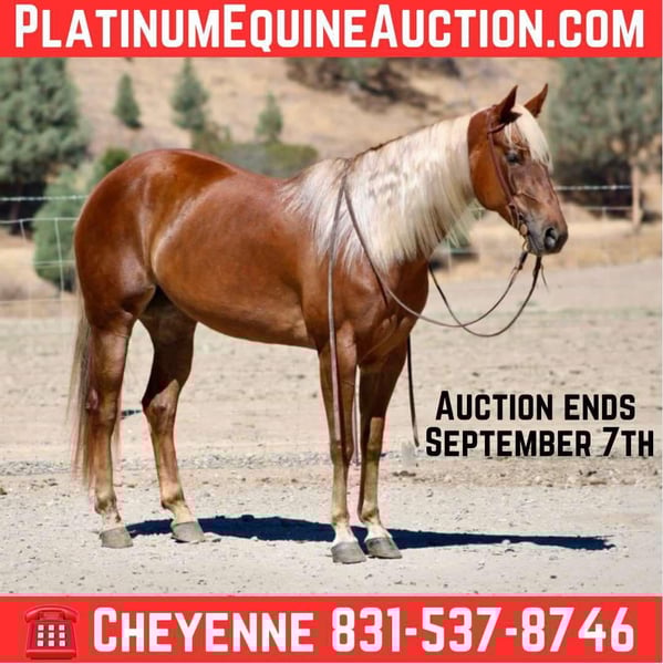 ONLINE AUCTION Place your bids at www.PlatinumEquineAuction.com Starting Bid $3500 Auction ends September 7th, 2025 Need a new saddle? Check out White Rock Saddles on our website or Facebook PFR DORA TRUE TUCKER affectionately known as, Honey, a 2019 AQHA mare who is as sweet as her name. She’s a striking golden sorrel with a long, flaxen mane and tail that make her truly eye-catching in and out of the arena. Standing a solid 15HH, Honey is beautifully balanced, well-built, and ready to go in any direction. This mare isn’t just about looks, she’s got the brains and training to match. Honey travels out calm and collected, with a naturally low headset and smooth, pretty movement in every gait. She has a soft collected stop, easy reverse, and is very user-friendly, making her a great partner for riders of all levels. Honey has proven herself to be versatile and dependable. She’s been used in summer camps to teach children the fundamentals of riding and horse care, showing just how patient and willing she is. On the trails, she’s a rock solid mount who goes wherever you point her, crossing water, bridges, brush, and rough terrain with confidence and ease. She’s also a dream to handle on the ground. Honey stands quietly for tacking up, is great for the farrier, clips like a pro, and has impeccable stall and pasture manners. She loads and hauls in all trailers quietly. Her puppy dog personality shines through in everything she does. Honey loves people, thrives on attention, and is happiest when she’s pleasing her rider. Whether you’re looking for a trustworthy trail companion, a family horse, or a mare with the foundation and build to go on in multiple disciplines, Honey checks all the boxes. She is the kind of horse you’ll enjoy every single day safe, talented, and full of heart. She is located in Bitterwater, CA. for more info or to come see her in person contact Cheyenne Rey 831-537-8746. ONLINE AUCTION Place your bids at www.PlatinumEquineAuction.com Starting Bid $3500 Auction ends September 7th, 2025 Need a new saddle? Check out White Rock Saddles on our website or Facebook
