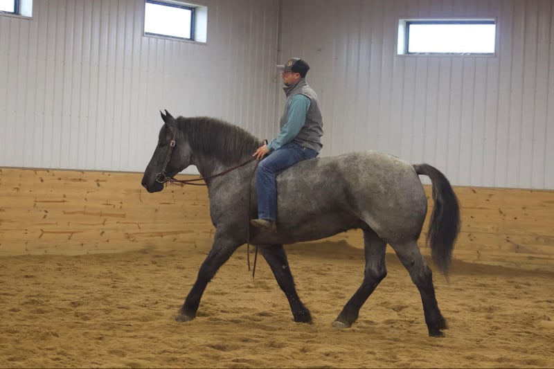 ONLINE AUCTION Place your bids at www.PlatinumEquineAuction.com Starting Bid $3500 Auction ends November 24th, 2024 Need a new saddle? Check out White Rock Saddles on our website or Facebook! Bruno an absolute stunning Blue roan Percheron/ QH cross gelding that is extremely gentle, genuine and soon to be your next best friend. At 5 yrs old he has an old soul with a been there done that attitude. Standing a perfect 16 hands tall Bruno is broke to ride and drive you can’t go wrong with him. He stands to harness, hitch, tack, mount, and groom. He is easy to catch and will meet you at the gate every time. He’s done his fair share of ranch work, seen a lot of cattle in wide open country and has had a lot of colts ponied off him. Bruno has been through the obstacle course and takes everything in stride. He has very smooth gates and his lope is just as comfortable as reclining back the lazy boy in the living room. He’s been to town and really enjoys seeing the sights and sounds along with all the attention he can soak up, as he strives to be the center of attention. Bruno has had many deferent levels of riders on him from advanced to timid beginners and he always takes great care of everyone. He is surefooted in the most difficult terrain, and will go through deep water. Bruno crosses wooden bridges, he is traffic safe and Bruno is definitely a unicorn and ready to be your next best friend. He is UTD on farrier, dental, coggins and comes with a pre purchase exam from our vet. Bruno sells 100% in every way with no scars or blemishes what so ever. FMI call/text Nicole Clark 563-608-1061 Located in Bloomfield, Iowa. Happy to answer any questions or help arrange shipping. ONLINE AUCTION Place your bids at www.PlatinumEquineAuction.com Starting Bid $3500 Auction ends November 24th, 2024 Need a new saddle? Check out White Rock Saddles on our website or Facebook!