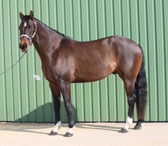 AM Ultimate Aint (Schoko) ist ein bildhübscher Quarter Horse Wallach, geboren im April 2019, mit einem Stockmaß von ca. 167 cm. Der großrahmige Wallach überzeugt durch sein korrektes Gebäude und sehr kompakte, harmonische Proportionen. Er besitzt AQHA-Papiere sowie einen Equidenpass und bringt eine sehr gute Allround-Abstammung (Aint It The Blues x The Ultimate Fancy) mit. Der Wallach ist barhuf, regelmäßig zahnkontrolliert und wird osteopathisch betreut. Impfungen und Wurmkuren erfolgen zuverlässig. Aufgrund seines Wachstums wurde er spät und schonend angeritten und vielseitig ausgebildet. Schoko kennt Longenarbeit, Doppellonge, die Arbeit am Kappzaum sowie Bodenarbeit mit Knotenhalfter und Arbeitsseil. Auch Gelassenheitstraining und Balancetraining gehören zu seinem Ausbildungsstand. Im Gelände geht der Wallach brav in der Gruppe und ist zudem als Handpferd erfahren. Alltagssituationen wie Autos, Trecker, Hunde, Kinder und vieles mehr sind ihm vertraut. Seine Gänge sind sehr angenehm und weich zu sitzen. Charakterlich zeigt er sich als sensibler, menschenbezogener und freundlicher Wallach, der den Kontakt zum Menschen sehr schätzt und sich gerne kraulen lässt. Schoko ist lieb im Umgang, lernwillig und stets bemüht, seinem Reiter zu gefallen. Gleichzeitig bringt er eine gewisse Sensibilität und Schreckhaftigkeit mit, weshalb er einen Menschen benötigt, der ihm Sicherheit vermittelt und konsequent, aber ruhig mit ihm arbeitet. Besonders gut spricht er auf Signalwortarbeit an. Er kennt sowohl Offenstall- als auch Boxenhaltung, ist in der Herde gut verträglich und zeigt sich zuverlässig beim Schmied sowie beim Verladen. Gesundheitlich ist zu erwähnen, dass er an einem Sommerekzem durch Pollenallergie leidet, welches sich mit entsprechender Pflege und angepasstem Management gut händeln lässt. Zudem hatte er infolge eines Unfalls eine Sehnenscheideneröffnung an der Hinterhand, die jedoch komplikationslos und vollständig ausgeheilt ist. Tierärztliche sowie Klinikberichte können selbstverständlich eingesehen werden. Ein Überbein am Vorderbein ist ohne Befund. Unter einem erfahrenen Reiter, der ihn mit Ruhe, Klarheit und Konsequenz weiter ausbildet und fördert, entwickelt er sich zu einem tollen und vielseitigen Partner. Er eignet sich sowohl für den ambitionierten Freizeitbereich als auch für den Turniersport in Richtung Allround und ist ebenfalls für Hunter-Klassen interessant.
