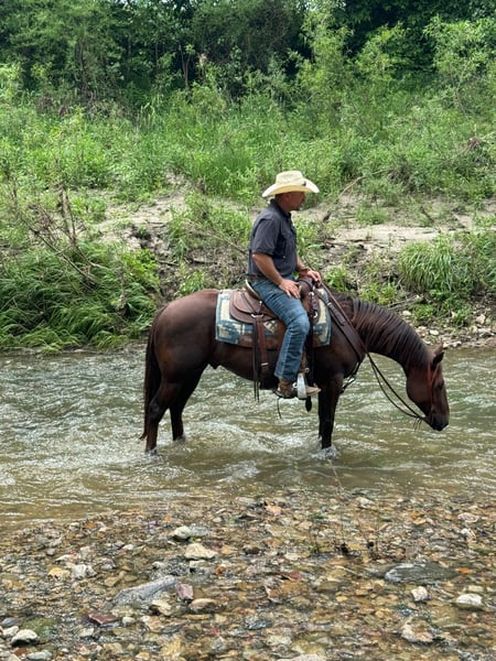 ONLINE AUCTION Place your bids at www.PlatinumEquineAuction.com Starting Bid $3500 Auction ends June 9th, 2024 Need a new saddle? Check out White Rock Saddles on our website or Facebook! “Zombie” is a 5 yo grade gelding, standing 14.1 hh tall. Zombie has so much natural talent and heart. If you want a true gentleman to take you out on the trails or out in the pasture to get a job done he is a great fit! We have roped calves out in the pasture on him, gathered cattle, sorted cattle, roped the dummy, ponied colts with Zombie and went on countless miles of trails over rough terrain, brushy timber, crossing ditches and creeks. He is sure handy and reliable to get the job done. We have even used him to drag go kart out when it was stuck. No matter what the job is Zombie will give you his all. We appreciate the one hand handle Zombie has, making it easy to manuever out on the trails or in the arena. Zombie works nicely on a loose rein, leg pressure, spins, side passes and has a big stop. He can be ridding bareback, bridals great or you can just jump on him in just a halter. He has excellent ground manners, ties great, loads and hauls like a champ, stands for farrier, and is respectful of your space. He rides out alone, doesn’t matter if he has another horse to go with or by himself. He has been ridden along traffic, around farm equipment, atvs, 4 wheelers and dogs. He can be turned out in pasture, easy to catch or kept in a stall. He is consistently the same horse. He has never offered to buck, kick, rear or run off. Thank you for taking the time to read about Zombie and watching his video. We would love to answer any questions you have regarding him. Feel free to contact us or schedule a time to come and try him out. He is located in Bolivar, MO and shipping arrangements can be made anywhere in the US. Roger Stark 417-770-8584. ONLINE AUCTION Place your bids at www.PlatinumEquineAuction.com Starting Bid $3500 Auction ends June 9th, 2024 Need a new saddle? Check out White Rock Saddles on our website or Facebook!