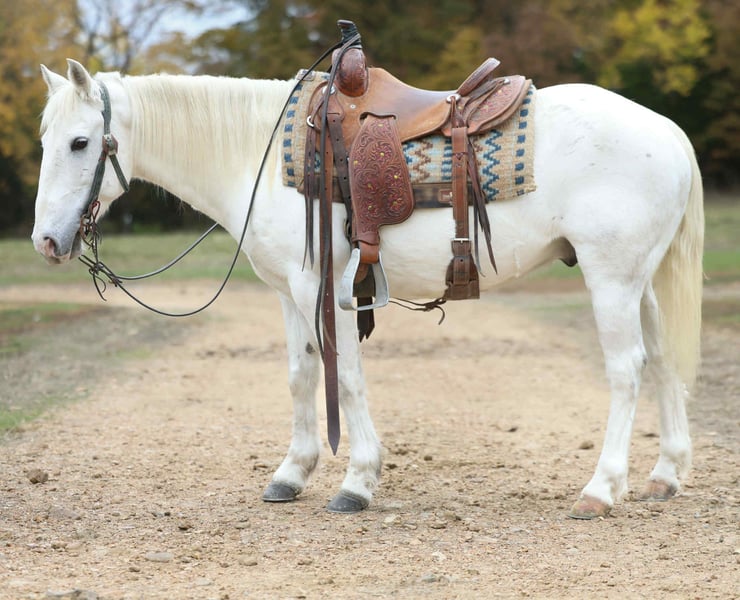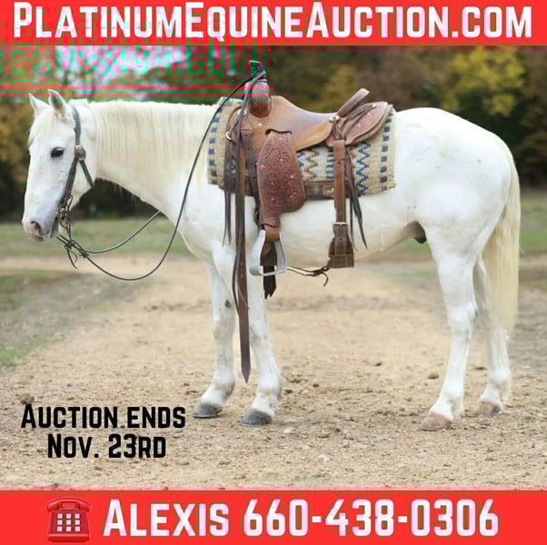 ONLINE AUCTION Place your bids at www.PlatinumEquineAuction.com Starting Bid $3500 Auction ends November 23rd, 2025 Need a new saddle? Check out White Rock Saddles on our website or Facebook Smarty is the kind of gelding everyone wishes they had in their barn. Big heart, big try, and a personality that shines. Standing at 14.1 hands, this 6-year-old grade Quarter Pony packs all the talent, cow sense, and athletic ability of a big horse into a handy, easy-to-ride size. He’s been rode outside extensively and has real-world experience pinning back cattle at the sale barn. Smarty has also breakawayed calves while pushing and shows a ton of natural cow sense — he’s cowy, willing, and always ready to go to work. Out on the trail, Smarty is steady and confident, taking every obstacle in stride. Whether it’s crossing water, dragging a log, or maneuvering through tight spots, he does it all with ease. This gelding has a smooth, collected short lope, a big stop, and a soft, easy neck rein. He’s gentle as they come — the first one to meet you at the gate and always eager for attention. Smarty is truly the kind that makes you look forward to saddling up every day — broke, honest, and full of heart. If you’re looking for a versatile, gentle, and well-rounded partner that can go from the ranch to the trail or even into the arena, Smarty is your guy. For more info contact Alexis with AM Equine 660-438-0306 Located in Cole Camp, MO. ONLINE AUCTION Place your bids at www.PlatinumEquineAuction.com Starting Bid $3500 Auction ends November 23rd, 2025 Need a new saddle? Check out White Rock Saddles on our website or Facebook