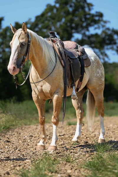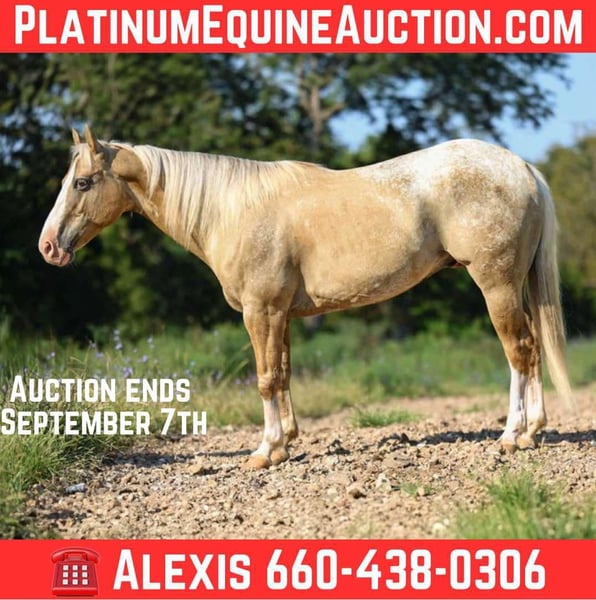 ONLINE AUCTION Place your bids at www.PlatinumEquineAuction.com Starting Bid $3500 Auction ends September 7th, 2025 Need a new saddle? Check out White Rock Saddles on our website or Facebook Meet Ricky Bobby! Introducing Ricky your palomino prince! A 7 year old grade POA Gelding. Ricky is the full all around package, standing 14.1 HH but built to last. Ricky has a beautiful confirmation, a good foot, clean legged, deep in the chest with a very nice hip. Ricky Bobby is everyone’s night in shining armor, he has the personality of a saint. Always the first to greet you at the gate, easy to catch awaiting whatever adventure you point him towards. Want to lead your kid around the yard? He’s solid. Trail ride through the trees, water, wildlife, vehicles? Ricky is going to take care of you every step of the way. Ricky is not only a joy to pleasure ride but is an athlete in and out of the arena. This young, athletic gelding has smooth lead departures, rides soft in the face and moves off your leg beautifully with a nice stop. Ricky has a true one hand neck rein, whether you’re asking him to lope circles or a nice spin he’s got you covered. Ricky is incredibly versatile, he’s gentle and quiet enough for the kids to take to play days or you can take him on a hard days work. This exceptional gelding has roped and doctored in the pasture and been used to push cattle at the sale barn and will go as long as you ask. Ricky sells 100% sound and sane. Call AM Equine Alexis 660-438 0306 for further questions. Located in Cole Camp, MO. ONLINE AUCTION Place your bids at www.PlatinumEquineAuction.com Starting Bid $3500 Auction ends September 7th, 2025 Need a new saddle? Check out White Rock Saddles on our website or Facebook