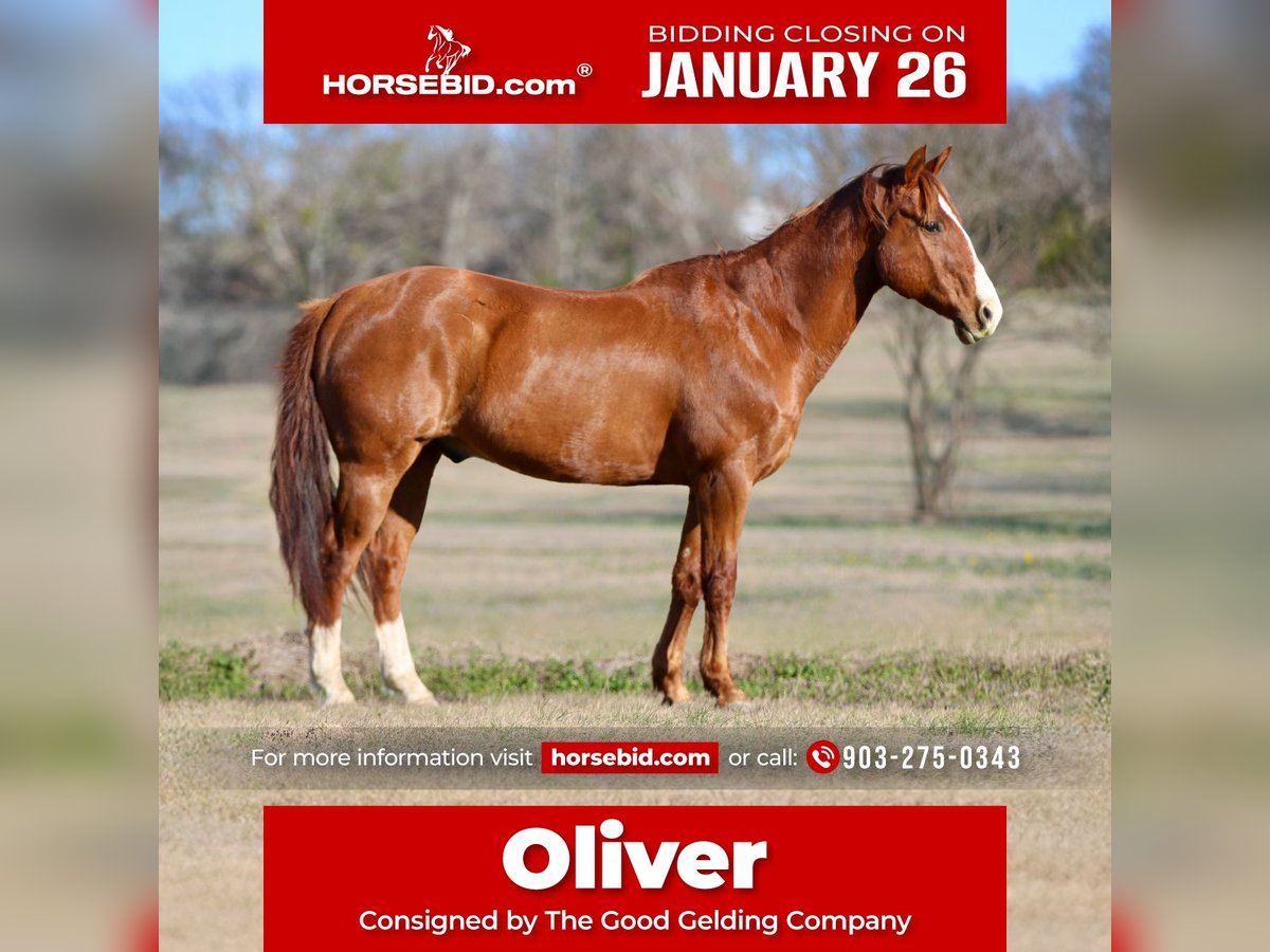 𝐉𝐀𝐍𝐔𝐀𝐑𝐘 ⭐️𝑨𝒍𝒍 𝑺𝒕𝒂𝒓 𝑳𝒊𝒏𝒆𝒖𝒑⭐️ Happening now thru MONDAY | JANUARY 26th - Available EXCLUSIVELY on HorseBid's website! For more details and to register visit: www.Horsebid.com CONSIGNOR CONTACT: The Good Gelding Company 903-275-0343 LOCATION: Athens, TX BREED: Quarter horse REGISTERED: Yes REGISTERED NAME: GGC Oliver COLOR: Chestnut HEIGHT: 14.2 AGE: 8 GENDER: Gelding Oliver is a handsome 8-year-old chestnut gelding standing 14.2 hands. He’s a tried-and-true trail horse who confidently crosses whatever you point him at and builds confidence in his riders. He is happy to lead or follow and his steady nature makes him an excellent choice for group outings or solo adventures. He has a quiet, willing demeanor that suits a wide range of riders. On the ground, Oliver is as easy as they come. He has a soft, kind eye, is friendly and personable, and stands tied patiently all day without fuss. He requires no lunging and is ready to go when you are. Oliver has been handled and ridden by beginners and children, and his calm nature allows him to be ridden bareback with ease. He gets along well with other horses, fits seamlessly into a herd environment, and he is the type that makes ownership simple and enjoyable. Oliver is an ideal option for a family mount, confidence-builder, or anyone seeking a safe, uncomplicated gelding that delivers exactly what he promises.