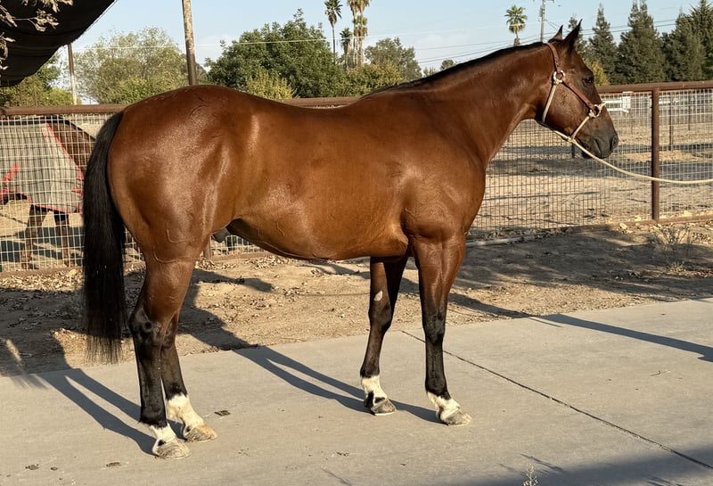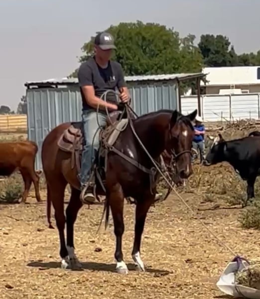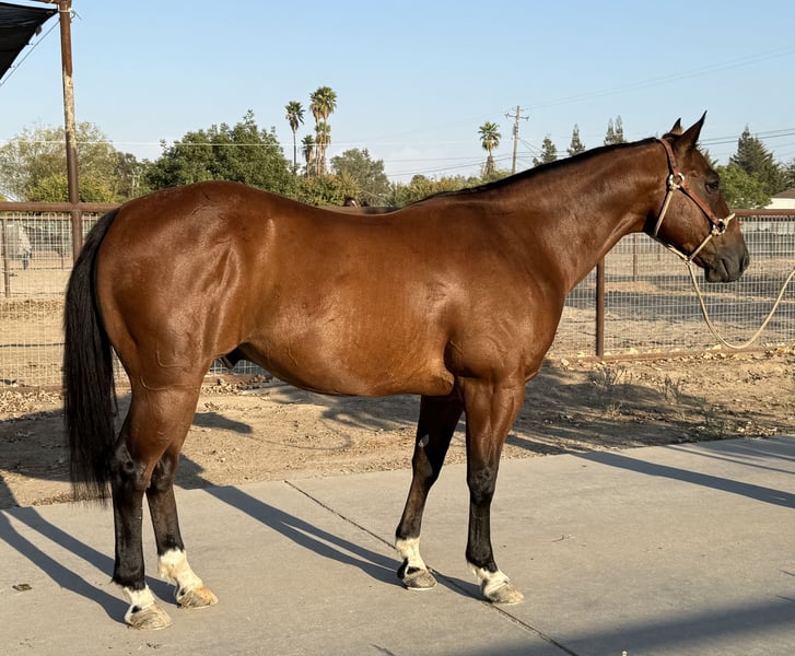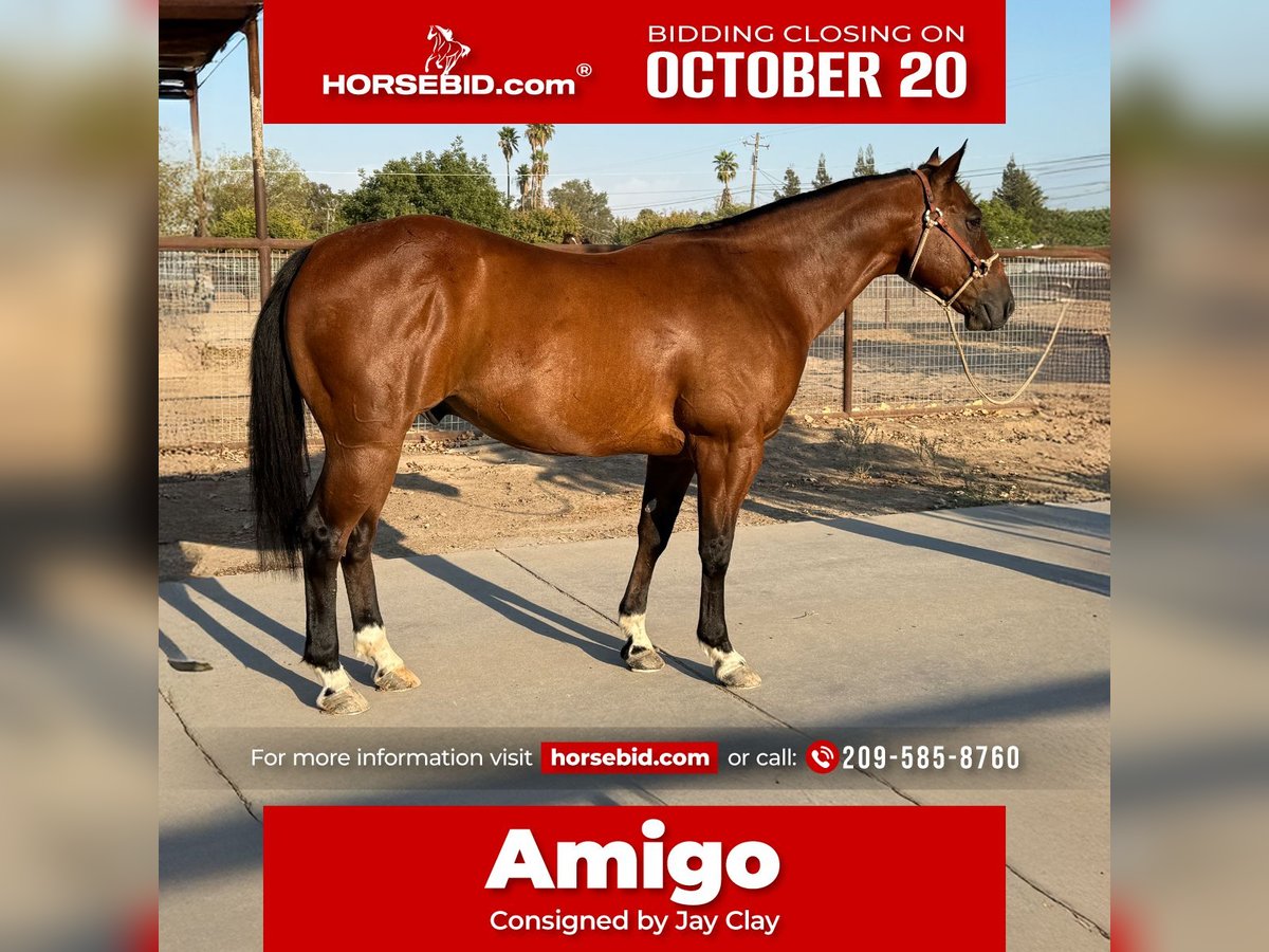 ♦️ 𝐭𝐡𝐞 𝐀𝐌𝐄𝐑𝐈𝐂𝐀𝐍 𝓕𝓪𝓵𝓵 𝓒𝓵𝓪𝓼𝓼𝓲𝓬 ♦️ Happening now thru MONDAY | OCTOBER 20th - Available EXCLUSIVELY on HorseBid's website! For more details and to register visit: www.Horsebid.com CONSIGNOR CONTACT: Jay Clay 209-585-8760 LOCATION: Madera, CA BREED: Quarter horse REGISTERED: No COLOR: Bay HEIGHT: 14.2 AGE: 7 GENDER: Gelding Meet “Amigo” a nice bay 7 year old Ranch- Trail- Heel Gelding! This versatile and athletic horse is the ultimate all-around partner, excelling in trail riding, ranch work, and heeling. Amigo is smooth to ride, kind to all, and an asset to have around! He is a seasoned trail horse, comfortable navigating in all terrain. He's a valuable asset on the ranch, with experience working cattle and handling various tasks with ease. But Amigo is not just limited to trails and ranch work - he's is also a fun jackpot type HEEL horse! Whether you're looking for a partner for competition roping, a reliable trail companion, or a trusty ranch hand, Amigo is the perfect choice. With his intelligent and willing nature, Amigo is easy to use and a pleasure to ride. He's got a strong work ethic and is always eager to please. If you're looking for a horse that can do it all, take a look at Amigo. Sound. UTD on teeth, vaccinations, worming, shoeing, coggins. Call for more information.
