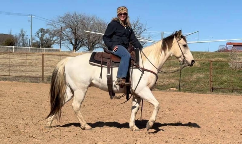 ONLINE AUCTION Place your bids at www.PlatinumEquineAuction.com Starting Bid $3500 Auction ends February 9th, 2025 Need a new saddle? Check out White Rock Saddles on our website or Facebook! Alfie is one of our most favorite horses, standing at 14.2H and 7 yrs old, he’s the perfect height AND perfect age for everyone! Not to mention, he’s a GORGEOUS buckskin paint! Alfie has such an AMAZING personality and he is extremely gentle. He’s been primary used as a western AND english lesson horse for all ages. He absolutely knows how to operate to the riders ability. He’ll take care of some of the babiest of beginners without one wrong step and he’ll move out and ride around more free for the advanced riders! He’s very comfortable to ride and will make you want to ride all day long with how fun he is! He is as honest as they come and only wants to please! Alfie is easy to ride, will neck rein, direct rein, move off leg and he stops exactly when you ask him to! He does great with time off and never offers to buck, bolt or rear! He’s proven safe and sane! He’s extremely easy to get along with, ties great, loves to be brushed and loved on, loads and hauls well, stands great for farrier and all the above! The second we swung a leg over him, he became the barn favorite! Safe and gentle is our niche, but it’s rare to find a younger horse with his experience and ability to adapt to the level of his rider! Not only that but, buckskin paints are few and far between and it’s not often they are sane and beginner gentle too! Someone is about to get their dream horse and those who are shopping for color but need gentle, absolutely don’t want to miss Alfie! More pics and videos on his website page at northtexashorsecompany.com/alfie. Please call Blair with North Texas Horse Company for more info at 817-757-3046. We are located in Weatherford, TX and can help arrange affordable shipping to anyone!! ONLINE AUCTION Place your bids at www.PlatinumEquineAuction.com Starting Bid $3500 Auction ends February 9th, 2025 Need a new saddle? Check out White Rock Saddles on our website or Facebook!