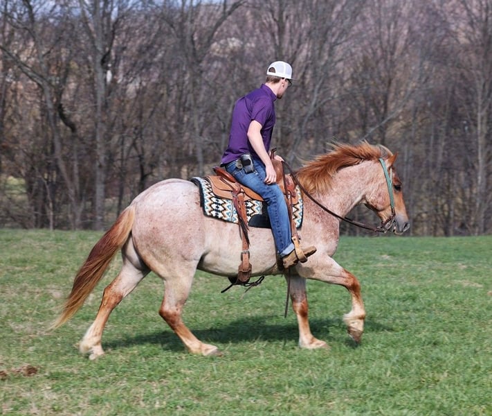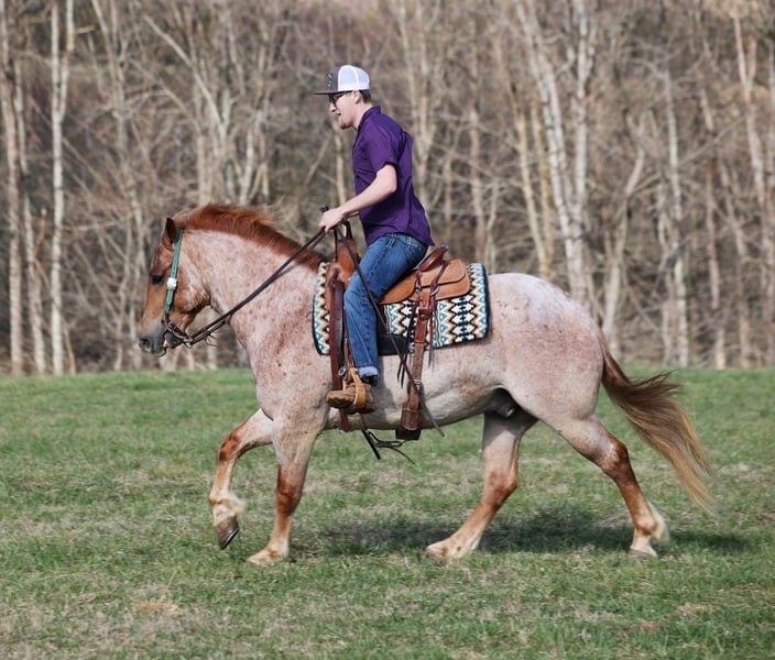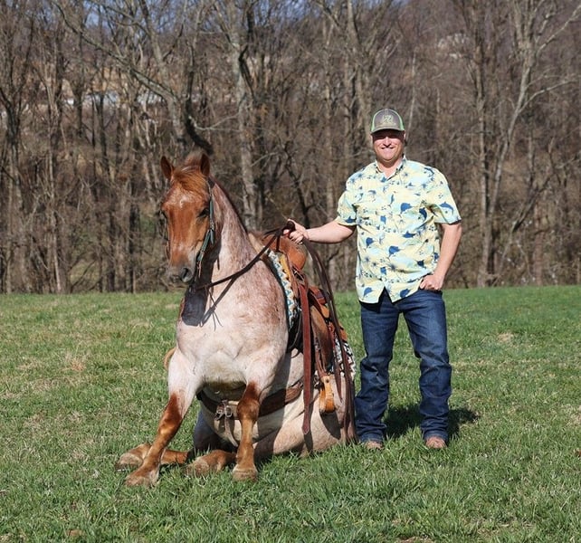 ONLINE AUCTION Place your bids at www.PlatinumEquineAuction.com Starting Bid $3500 Auction ends July 14th, 2024 Need a new saddle? Check out White Rock Saddles on our website or Facebook! Here is one that checks the boxes… well built, well broke, lots of color and friendly… Asher is a stout built Red Roan gelding standing around 15hh, he is 6 years old and is one the most kind and friendliest horses that you will find! Asher has done some of the natural horsemanship training and he also knows some tricks, he will bow, lay down and set on his rump. Asher has been ridden down the highways, we have had him in town and he is very traffic safe. Asher is great on trails and he will cross creeks, ditches, logs and navigate rough rocky areas. He has a smooth jog, a VERY VERY nice easy to set lope, a good stop, spins a circle both ways and backs with ease! He has been exposed to all kinds of wildlife such as deer or turkey or other animals like cows or dogs and will go anywhere that he is asked too. He has been rode many miles in the mountains of Eastern Kentucky and encountered every obstacle possible on the trail. He will go up or down even the steepest slopes, across deep creeks, over downed trees, and over all types of rough terrain while still being sure footed. Located in Level Green, KY. Feel free to call Moore Trained Horses Logan 765-265-0033 with any questions. ONLINE AUCTION Place your bids at www.PlatinumEquineAuction.com Starting Bid $3500 Auction ends July 14th, 2024 Need a new saddle? Check out White Rock Saddles on our website or Facebook!
