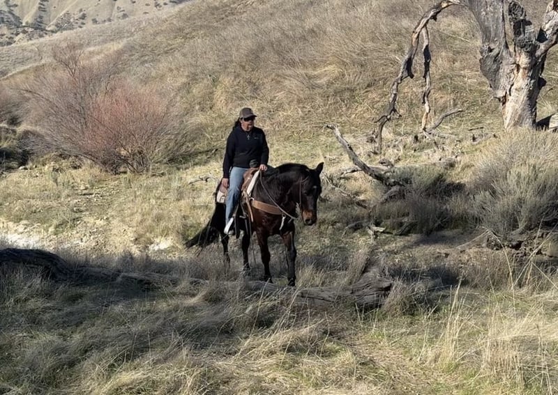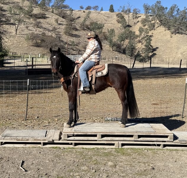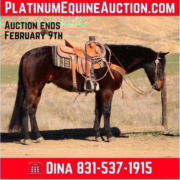 ONLINE AUCTION Place your bids at www.PlatinumEquineAuction.com Starting Bid $3500 Auction ends February 9th, 2025 Need a new saddle? Check out White Rock Saddles on our website or Facebook! Let me tell you all about Dexter , the horse that’s basically a four-legged superhero! Standing just at 15 hands, this 7-year-old gelding is not just built like a tank; he’s also the sweetest, most chill horse you’ll ever meet. Imagine a buddy who’s always down for an adventure—Dexter has tackled hundreds of miles through the stunning Santa Cruz mountains and scenic Redwoods , breezing through steep hills. narrow trails deep creek crossings and heavily brushed country and handles like it’s a walk in the park. And don’t even get me started on his confidence! He’s conquered obstacles like bridges, tires, and even car washes without any concern. Tarps, flags flying and balls bouncing are a cake walk for this sure footed trusty companion like Dexter. Now, if you’re into fancy footwork, you’ll love his smooth, hobby horse lope and that gliding trot. Transitioning between gaits like it’s as smooth and silk. He’s got a nice stop, can turn around with ease, and backs up like a pro all with just the slightest little leg pressure. He’s also done his fair share of cattle gathering and branding, plus he’s started roping. Talk about a versatile guy! He’s been to town, is calm around traffic, dogs, and all sorts of wildlife, making him the ultimate adventure partner. But here’s the real kicker. Dexter is the kind of horse you can trust with your inexperienced friends or relatives. You can just sit back and relax, knowing he’s got their back. He’s a total sweetheart when it comes to grooming and bathing, and he’s patient in cross ties. Loading up in any trailer? Easy peasy! Always ready for new places, he’s well-cared for and up to date on everything. If you’re on the hunt for a safe, trustworthy family member, Dexter is your guy! Give Dina at Longhorn Ranch a call at 831-537-1915 and come meet your new best friend. Located in Paicines, CA. ONLINE AUCTION Place your bids at www.PlatinumEquineAuction.com Starting Bid $3500 Auction ends February 9th, 2025 Need a new saddle? Check out White Rock Saddles on our website or Facebook!