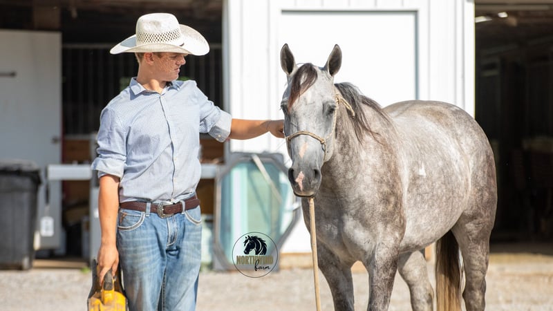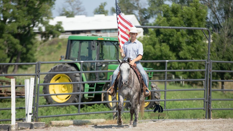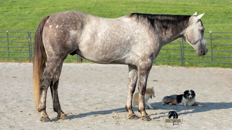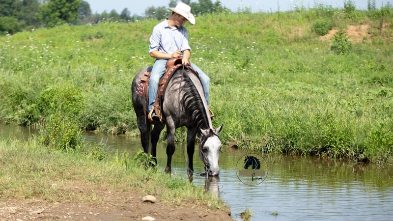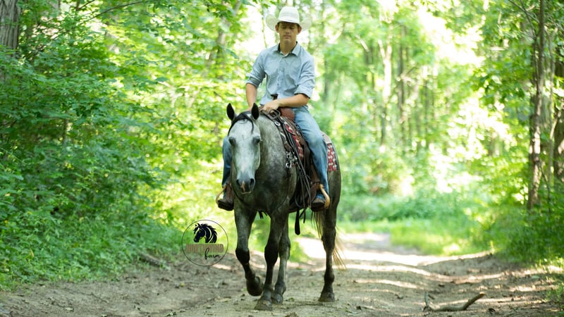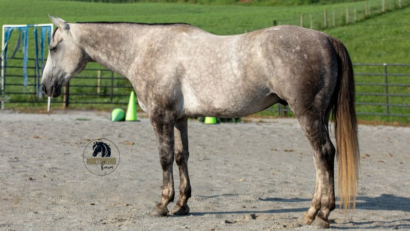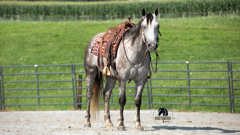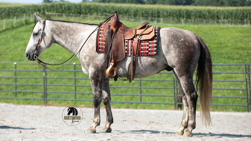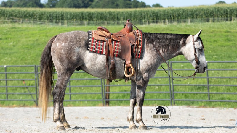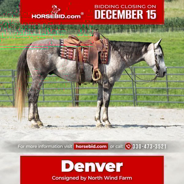 🎄𝐓𝐇𝐄 𝑯𝒐𝒍𝒊𝒅𝒂𝒚 𝐂𝐋𝐀𝐒𝐒𝐈𝐂🎄 Happening now thru MONDAY | DECEMBER 15th - Available EXCLUSIVELY on HorseBid's website! For more details and to register visit: www.Horsebid.com CONSIGNOR CONTACT: North Wind Farm 330-473-3521 LOCATION: Fredericksburg OH BREED: Quarter horse REGISTERED: No REGISTERED NAME: Denver COLOR: Gray HEIGHT: 15 AGE: 7 GENDER: Gelding Denver is a 7 yr old grade quarter horse gelding standing at 15 hh! He is a gorgeous dapple gray, with the sweetest personality! He is a dream to ride! He has the smoothest trot and canter! His walk, is easy and slow making him a great trail horse! He is very forgiving, and a great horse for all levels of riders! He is safe and dependable! Denver moves nicely and listens to cues well! He can be rode bareback, western, and even bridleless! He is as honest as the day is long and the same horse everytime you take him on a ride! We have taken Denver to state parks on rides and have rode him all over our farm! He does great at new places and takes everything in stride! He will cross creeks, steps over logs, and doesn’t mind the steep hills! He will cross bridges, the tires, and he will walk through the tarps and noodles! He doesn’t mind the ball and is used to being around dogs as well! Denver is a great swimming buddy and doesn’t mind being the diving board! He is used to being in chaotic situations and handles new stuff very well! He is an all around sweet gelding and so fun to ride! Denver also rides very well in the arena, he will pick up both leads, he stops, and backs up! He can be rode on a lose rein and moves off of leg pressure and neck rein or he will collect up and moves off of direct rein as well! He is a very smart guy and adapts well to new riders! We have rode Denver in the arena and all over our farm trails too! Denver is one of the sweetest geldings you will meet! Contact us for more info or to schedule to meet Denver!