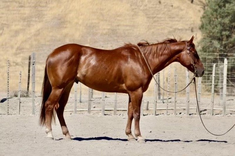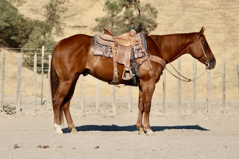 ONLINE AUCTION Place your bids at www.PlatinumEquineAuction.com Starting Bid $3500 Auction ends September 22nd, 2024 Need a new saddle? Check out White Rock Saddles on our website or Facebook! Meet Cicis Golden Boy, affectionately known as “Boy,” a stunning AQHA 2018 gelding standing proudly at 15.1 hands. This gentle gelding boasts an eye catching roaning pattern in his flank and a charming coon tail that adds to his unique appeal. With a heart as big as his stature, Boy has dabbled in just about everything from gathering cattle with ease to showcasing finesse in the arena with a beautiful collected headset and impressive turnaround and a really beautiful sliding stop. Adventure is second nature for him; he’s been out on trails where he confidently navigates wildlife encounters and steep inclines without batting an eyelash. His training is thorough he’s been desensitized to flags and tarps and effortlessly tackles trail obstacles like tires and bridges, making each outing not just enjoyable but also stress free for both horse and rider. Boy has been rode down busy streets with cars,motorcycles, big trucks, and trains he showcased his calm stature with all of it. Friendly by nature, Boy tacks up beautifully, stands calmly for grooming or clipping sessions, and behaves impeccably for the farrier’s care. Whether he’s enjoying life in pasture or cozying up in a stall setting, loading into trailers is no trouble at all for this easygoing fellow. Suitable for riders of all levels thanks to his can-do attitude and steady demeanor, Boy possesses many more years ahead to become your ultimate partner! His versatility shines through imagine him strutting his stuff in the show ring across English or Western disciplines; whether it’s ranch work or pleasure riding you seek, this reliable horse promises joy for countless rides to come.Please contact Longhorn Ranch Dina 831-537-1915 located in Paicines, CA. ONLINE AUCTION Place your bids at www.PlatinumEquineAuction.com Starting Bid $3500 Auction ends September 22nd, 2024 Need a new saddle? Check out White Rock Saddles on our website or Facebook!
