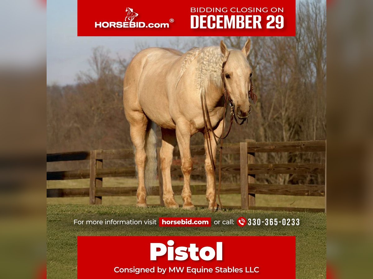 ⚜️ 𝓗𝓮𝓻𝓲𝓽𝓪𝓰𝓮 𝐖𝐢𝐧𝐭𝐞𝐫 𝓒𝓵𝓪𝓼𝓼𝓲𝓬⚜️ Happening now thru MONDAY | DECEMBER 29th - Available EXCLUSIVELY on HorseBid's website! For more details and to register visit: www.Horsebid.com CONSIGNOR CONTACT: MW Equine Stables LLC 330-365-0233 LOCATION: Fresno, OH BREED: Quarter Horse REGISTERED: No COLOR: Palomino HEIGHT: 15.2 AGE: 7 GENDER: Gelding 𝐈𝐟 𝐲𝐨𝐮’𝐯𝐞 𝐛𝐞𝐞𝐧 𝐬𝐞𝐚𝐫𝐜𝐡𝐢𝐧𝐠 𝐟𝐨𝐫 𝐚 𝐡𝐨𝐫𝐬𝐞 𝐰𝐡𝐨 𝐜𝐡𝐞𝐜𝐤𝐬 𝐞𝐯𝐞𝐫𝐲 𝐛𝐨𝐱—𝐯𝐞𝐫𝐬𝐚𝐭𝐢𝐥𝐞, 𝐫𝐞𝐥𝐢𝐚𝐛𝐥𝐞, 𝐥𝐞𝐯𝐞𝐥-𝐡𝐞𝐚𝐝𝐞𝐝, 𝐚𝐧𝐝 𝐬𝐰𝐞𝐞𝐭 𝐚𝐬 𝐩𝐢𝐞—Pistol is the one you’ve been waiting for. He is the kind of partner who gives you the freedom to go in any direction while giving you the peace of mind that he’ll take care of you along the way. A safe, steady, and adaptable partner, ready for any adventure. Pistol is a 7 year old Palomino grade Quarter Horse gelding standing 15.2 hands high. This gelding is beauty, brains, and talent wrapped into one perfectly sized package. He has the absolute best personality, this gelding wants to be your friend and be a part of the family. He rides western, trails, bridleless, bareback.. And is an absolute sweetheart. He is will cross all kinds of obstacles, creeks, bridges, logs, etc.. Pistol has 3 amazing gaits - walk, trot, and canter.. He has been on tons of public trail rides and moonlight rides.. Rides great with a group as well as alone.. He is also great on turnout with a herd.. He’s been thoughtfully started and given the kind of foundation that sets him up for success in absolutely any discipline. With his temperament and training, Pistol is an ideal match for an amateur seeking a trustworthy, sensible young horse to parter with and enjoy for many years to come. For more info contact Marcus@ 330-365-0233 Located in Fresno Ohio