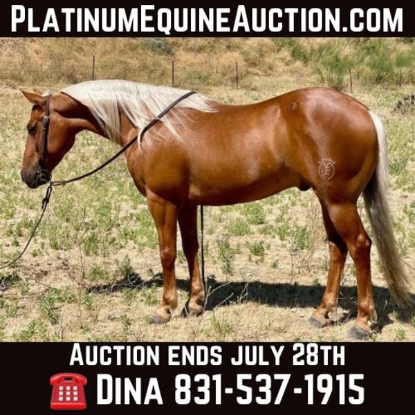 ONLINE AUCTION Place your bids at www.PlatinumEquineAuction.com Starting Bid $3500 Auction ends July 28th, 2024 Need a new saddle? Check out White Rock Saddles on our website or Facebook! Let me introduce you to the most beautiful horse you have ever seen. Herbie is fun size for sure. Not only is he jaw dropping gorgeous but rides like a dream. He’s 13.3HH and 7 years old making him easy for anyone to mount. Herbie is like a little Mac tuck with his huge hip and deep girth. Herbie is broke will turn with the touch of a rein, move off leg cues and is very responsive. He lopes nice easy, correct circles. Herbie is easy to navigate making him diverse for all types of riders. He is very safe and confident in most any situation. He will be a show stopper out on the trail or in the arena. Herbie has been used on the ranch and will handle a days work no problem. He’s cowy and confident and has had top hand training. He has branded and been started in the roping pen and is coming along nicely. He is a trail connoisseur. He will fallow the narrowest trail and be sure footed. He crosses water, logs, brush, and has encountered lots of wild animals. He is good to be around super gentle and friendly. He has a good foward movement and substance to him. Herbie gets attention anywhere he goes with his deep golden color and blonde mane and tail. Herbies has done trail obstacles and maintaines his gentle disposition. He has been to town giving him real world experiences with motorcyclists, sidewalks, bridges, dogs, trains and has proven to be solid. He is super out on the trail and will ride in a group setting or take a him out alone and he’s ready for any adventure. He tacks up easy and is quiet and patient. Herbie clips, ties, bathes and is good for the farrier and vet appointments. This horse is will steel the show no matter where you take him with his beauty. He is the definition of a horse with great confirmation. Herbie can be your best friend and trail partner or take him to the arena for some fun. He will be the prettiest horse anywhere you take him and you will be the envy of everyone. This boy will take the worry out of riding with his calm and cool disposition. Don’t miss this rare opportunity to own the classiest horse around. Please contact Longhorn Ranch Dina 831-537-1915 located in Paicines, CA. ONLINE AUCTION Place your bids at www.PlatinumEquineAuction.com Starting Bid $3500 Auction ends July 28th, 2024 Need a new saddle? Check out White Rock Saddles on our website or Facebook!