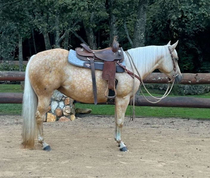 ONLINE AUCTION Place your bids at www.PlatinumEquineAuction.com Starting Bid $3500 Auction ends September 21st, 2025 Need a new saddle? Check out White Rock Saddles on our website or Facebook MSKITTYSGOLDENACRES, aka “Callie. She is a stunning 14.1h, 2017 model reg AQHA, Palomino mare by Palo Duro Cat, the only full sibling to the great Sophisticated Catt, and out of a Laker Doc (Bob Acre Doc) mare. Can’t say enough about Callie, she is very willing rides in arena, on trail and has been on live cattle and cow track. She has a great stop, moves off your legs and backs up when asked. She is shod on all four and has great hard feet. Callie requires no maintenance. If you’re looking for a great, gentle all around type horse to enjoy on the trails, in the arena, or take to the show pen this is your girl! She is easy to catch in the pasture, she sees you and he comes running! Callie is good to saddle, bridle and mount! Great to be around very calm, no problem tacking, bathing, shoeing, clipping and hauling. she can be stalled or out in pasture does fine alone. she is up to date on vaccines and Coggins. Located in Galax, VA. If you have any questions contact MaryJane Watson 276-233-8834. ONLINE AUCTION Place your bids at www.PlatinumEquineAuction.com Starting Bid $3500 Auction ends September 21st, 2025 Need a new saddle? Check out White Rock Saddles on our website or Facebook