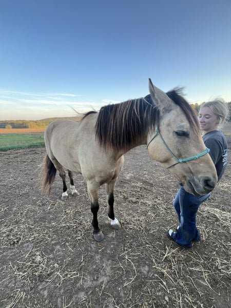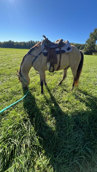 9 yr old AQHA registered dun/bucksin (dunskin) gelding. No bolt, buck, or rear. Good with farrier, will stand for saddling and mounting, including mounting block, teeth recently floated, utd on coggins and vaccines, no maintenance or shoes, friendly, stands tied, trailers great-will even unload self if needed, has been weekend camping and trail riding, can be kept as a single horse if needed as well, will ride out alone, AQHA papers in hand. Not a huge fan of fly spray but gets over it, sometimes mouths the bit, but can ride with a hackamore or bridleless. sometimes spooks with a startle but no bolt, buck, or rear, middle of herd. Loves treats. Email jandhcerveny@yahoo.com for more photos/videos.