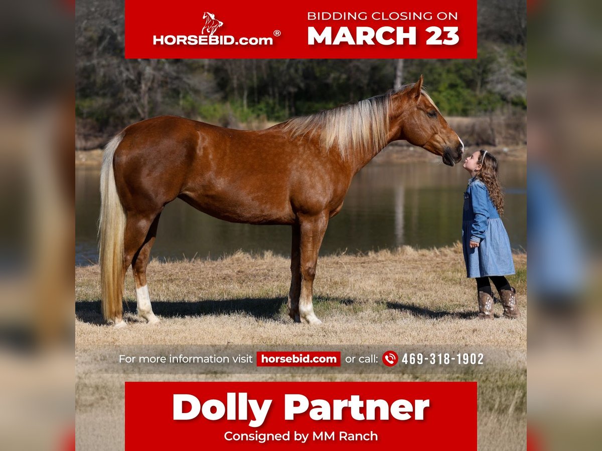 ⚜️𝓽𝓱𝓮 𝐆𝐎𝐋𝐃 𝓢𝓮𝓵𝓮𝓬𝓽⚜️ Happening now thru MONDAY | MARCH 23rd - Available EXCLUSIVELY on HorseBid's website! For more details and to register visit: www.Horsebid.com CONSIGNOR CONTACT: MM Ranch 469-318-1902 LOCATION: Forney, TX BREED: AQHA REGISTERED: Yes REGISTERED NAME: KATIE ROSE BY LL COLOR: Palomino HEIGHT: 15.1 AGE: 9 GENDER: Mare 🎤👱🏻♀️This is our dear sweet “Dolly Partner”!!! Yes we know Dolly Parton but it’s not to be confused with our sweet Dolly Partner!! (My 4 year old niece absolutely loves Dolly Parton but thinks her name is Dolly Partner cause she is a cowgirl!! I mean it makes sense. So it stuck and here is Dolly Partner. It’s the cutest thing ever to hear call her that. She loves her Dolly Partner.) 🎼👱🏻♀️Our sweet Dolly Partner is worthy of the superstar name cause she is truly ONCE IN A LIFETIME SUPERSTAR!! Absolutely worth her weight in gold!! 🌟 She is a AQHA registered stunning golden dappled palomino mare with the prettiest silver mane and tail. She is just 9 yr old and stands 15.1 hands tall. She is one of those impossible to find BOMBPROOF OLD FASHIONED FANCY BROKE ONES plus has the sweetest willing to please personality. She rides the very best. Of course she has all the fancy buttons to spin around and slide to a stop. But she will go as fast or as slow as you want her to go. She is the kind you can really enjoy riding and know you can’t screw up. She is ABSOLUTELY SAFE and BROKE for anyone to ride. If you can sit on her you can ride her no matter your riding level or age. I MEAN ANYONE CAN RIDE HER and ABSOLUTELY DO ANYTHING THEY WANT ON HER. You can ride her once a month a once a year and she is the same. You can catch her fresh out of the pasture and go. Dolly does not need to be tuned up or warmed up. Dolly stands perfect to be saddled and mounted. She will let you use a mounting block, fence, or bucket to get on and off. SHE DOES NOT HAVE ANY BAD HABITS OR QUIRKS. She is not scarred of anything, will not spook out on the trail. She will cross water, cross bridges, has been rode in every kind of terrain. She is the true definition of a bombproof safe for the whole family horse. We want to find Miss Partner an amazing home. This super sweet loving mares deserves it!!! 🎤👱🏻♀️She is a super easy keeper. Requires no maintenance of any kind. No special feed or supplements. She can go bare foot or put shoes on her. She has excellent hooves. She gets along great with other horses. She is not mean to other horses or marish. You can stall her or turn her out. Doesn’t matter to her. She sells 100% sounds with no issues. She did have a pre vet evaluation done included in the pictures. If you have anymore questions about her feel free to call. We would love to visit with you about her. We can help you arrange shipping anywhere. She is up to date on all vaccinations, worming, had her teeth checked, feet. She is ready to go to her new home to be loved and enjoyed. Don’t miss out on the one. These type amazing horses are sure hard to find.
