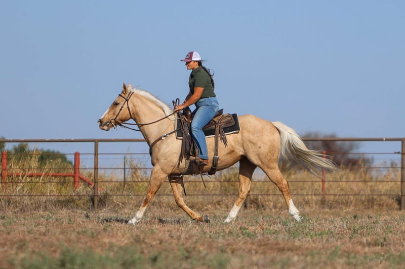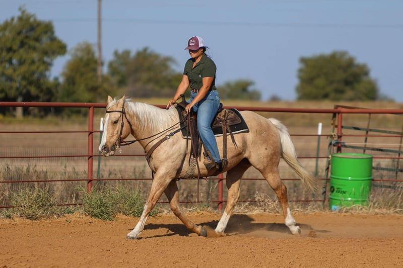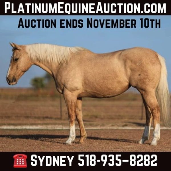 ONLINE AUCTION Place your bids at www.PlatinumEquineAuction.com Starting Bid $3500 Auction ends November 10th, 2024 Need a new saddle? Check out White Rock Saddles on our website or Facebook! Sun Frosted Feature aka “Frosty” is a registered 7 year old Appendix AQHA mare. She is a gorgeous palomino with slight dapples shining through her coat and lots of chrome on her legs and face. She stands at 15.1H and is nice and stout. This pretty mare has a big lovable personality that is so easy to get along with. She is constantly looking for attention, she’s the first one to meet you at the gate and will even give you the occasional nicker. With a big motor and more go than whoa she’s eager to work and could excel in a variety of disciplines. Frosty has been started on barrels and poles with potential to improve with the right person. She walk, trot, lopes on a fairly loose rein and can be ridden with one hand or two. She listens nicely to leg and seat pressure and is always willing to please. Frosty often looks to her rider for confidence in situations she might not be familiar with and tries her best to please you. She is a very big and strong mare making her an excellent competitive partner, fun trail mount, or even a great rideable broodmare. After all, she is a granddaughter of “Sun Frost” and excellent and sought after sire. Frosty has recently been seen by my vet, farrier, dentist, and chiropractor. She hops on the trailer with ease and backs off very nicely. Frosty can be outside in a pasture alone or with other horses, she also does well in a stall. Frosty has been a very easy keeper at my facility and has been an absolute joy to have around. For any questions about Frosty please call Sydney with SRS Training and Sales at 518-935-8282. Frosty is located in Granbury, TX. If you’re not local I will be happy to help arrange shipping anywhere in the US from Granbury, TX. ONLINE AUCTION Place your bids at www.PlatinumEquineAuction.com Starting Bid $3500 Auction ends November 10th, 2024 Need a new saddle? Check out White Rock Saddles on our website or Facebook!