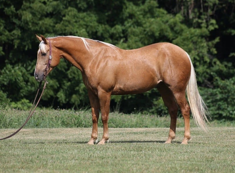 ONLINE AUCTION Place your bids at www.PlatinumEquineAuction.com Starting Bid $3500 Auction ends July 21st, 2024 Need a new saddle? Check out White Rock Saddles on our website or Facebook! ARC Jacs Gold Charm is living proof that Dream horses do exist! Talk about a horse that gets ALL of the looks where ever he goes!!! Jac is a super stout built Golden Palomino 2017 Registered AQHA gelding standing around 15.1hh. I’v had Jac since back in the winter and he has been used to around cattle, pasture roped and used to doctor as well. He has been ridden down the highways, we have had him in town and he is very traffic safe. Jac is great on trails and he will cross creeks, ditches, logs and navigate rough rocky areas. He has a smooth jog, a VERY VERY nice easy to set lope, a good stop, turns a circle both ways and backs with ease! He has been exposed to all kinds of wildlife such as deer or turkey or other animals like cows or dogs and will go anywhere that he is asked too. He has been rode many miles in the mountains of Eastern Kentucky and encountered every obstacle possible on the trail. He will go up or down even the steepest slopes, across deep creeks, over downed trees, and over all types of rough terrain while still being sure footed. Jac is a gentle, laid back type of horse that is not in a hurry and would be a great horse for the whole family! Jac is not cinchy, cold backed, does not crib or weave. Located in Level Green, KY. Feel free to call Moore Trained Horses Logan 765-265-0033 with any questions. ONLINE AUCTION Place your bids at www.PlatinumEquineAuction.com Starting Bid $3500 Auction ends July 21st, 2024 Need a new saddle? Check out White Rock Saddles on our website or Facebook!