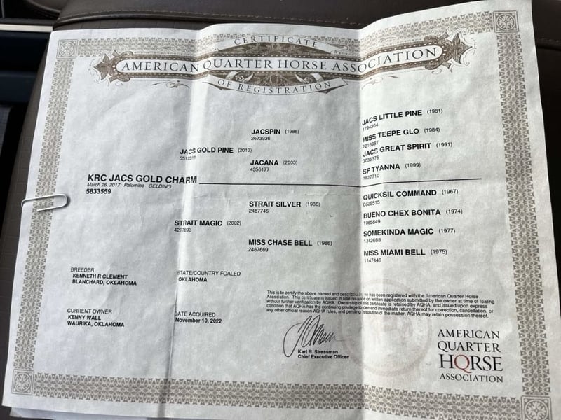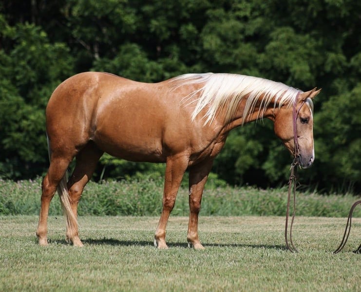 ONLINE AUCTION Place your bids at www.PlatinumEquineAuction.com Starting Bid $3500 Auction ends July 21st, 2024 Need a new saddle? Check out White Rock Saddles on our website or Facebook! ARC Jacs Gold Charm is living proof that Dream horses do exist! Talk about a horse that gets ALL of the looks where ever he goes!!! Jac is a super stout built Golden Palomino 2017 Registered AQHA gelding standing around 15.1hh. I’v had Jac since back in the winter and he has been used to around cattle, pasture roped and used to doctor as well. He has been ridden down the highways, we have had him in town and he is very traffic safe. Jac is great on trails and he will cross creeks, ditches, logs and navigate rough rocky areas. He has a smooth jog, a VERY VERY nice easy to set lope, a good stop, turns a circle both ways and backs with ease! He has been exposed to all kinds of wildlife such as deer or turkey or other animals like cows or dogs and will go anywhere that he is asked too. He has been rode many miles in the mountains of Eastern Kentucky and encountered every obstacle possible on the trail. He will go up or down even the steepest slopes, across deep creeks, over downed trees, and over all types of rough terrain while still being sure footed. Jac is a gentle, laid back type of horse that is not in a hurry and would be a great horse for the whole family! Jac is not cinchy, cold backed, does not crib or weave. Located in Level Green, KY. Feel free to call Moore Trained Horses Logan 765-265-0033 with any questions. ONLINE AUCTION Place your bids at www.PlatinumEquineAuction.com Starting Bid $3500 Auction ends July 21st, 2024 Need a new saddle? Check out White Rock Saddles on our website or Facebook!