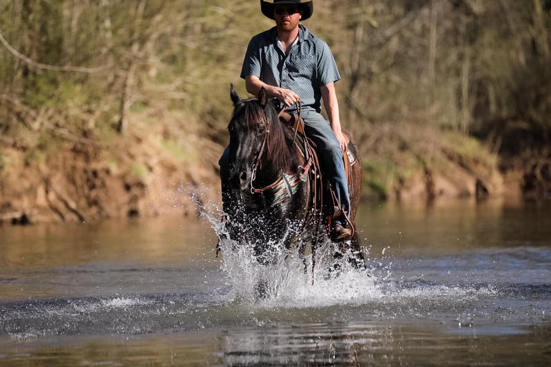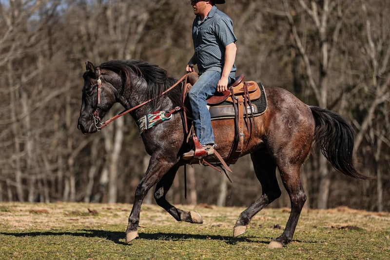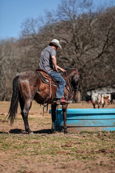 ONLINE AUCTION Place your bids at www.PlatinumEquineAuction.com Starting Bid $3500 Auction ends March 30th, 2025 Need a new saddle? Check out White Rock Saddles on our website or Facebook! PR BUCKS BLUE DRIFT… better known as B.B. around our place- is one of the nicest, and most willing ranch horse geldings we have ever had the pleasure of using. B.B is a true blue roan AQHA gelding standing 15.1 and is built like a using horse should be. He has been used out in the pasture catching, doctoring and loading cattle for a living, along with halter-breaking colts, riding fences, trail riding and everything in between. He truly is a versatile gelding around our place and will always get the job done for you. He is a gelding that will last you all day on the job and give you his all every step along the way. B.B. knows his job and is ready to go to work at any given moment. He is one hand broke, side passes with ease, will work the gates, hold the holes and stay ground tied all day. You won’t find much that phases this gelding. He is truly as user friendly for anyone wanting a ranch horse as they come. B.B. is not an (in your pocket) type gelding, however, even though he may not be looking to be someone’s next pet, don’t let the heart this horse has fool you. Not only does he have the grit and dedication to get any job you need done about the ranch, but the mindset it takes to get the job done correctly. So if you’re looking for a true handy, ranch gelding to go out and get the job done and look flashy while doing it, then B.B. might just fit into your herd. If you have any questions, would like to make a Buy It Now Offer or set up a Facetime Call, contact J & S Livestock JT 931-698-7159 Located in Santa Fe, TN. ONLINE AUCTION Place your bids at www.PlatinumEquineAuction.com Starting Bid $3500 Auction ends March 30th, 2025 Need a new saddle? Check out White Rock Saddles on our website or Facebook!
