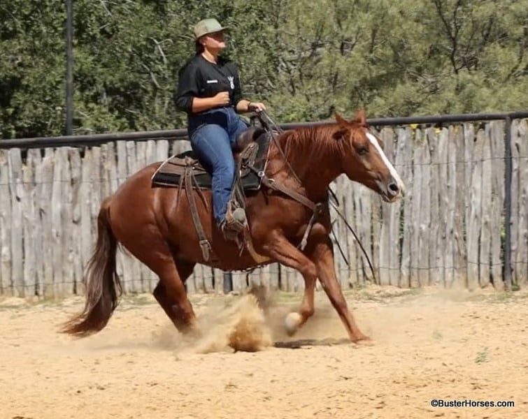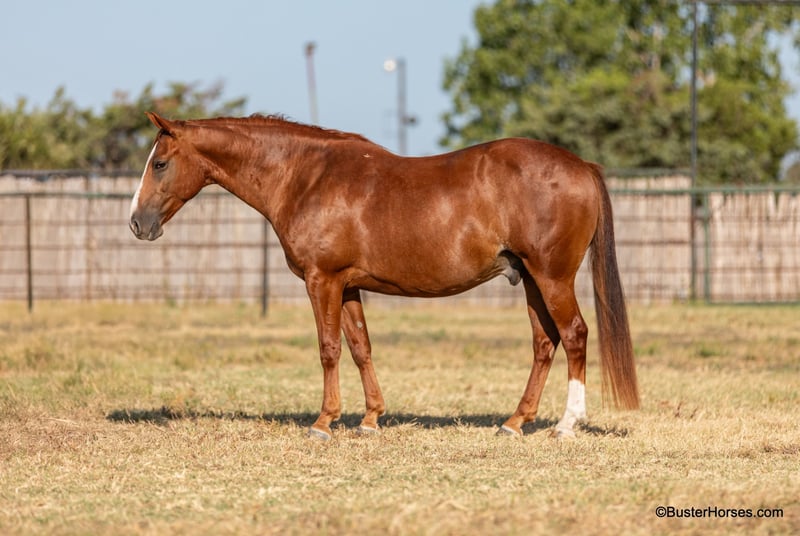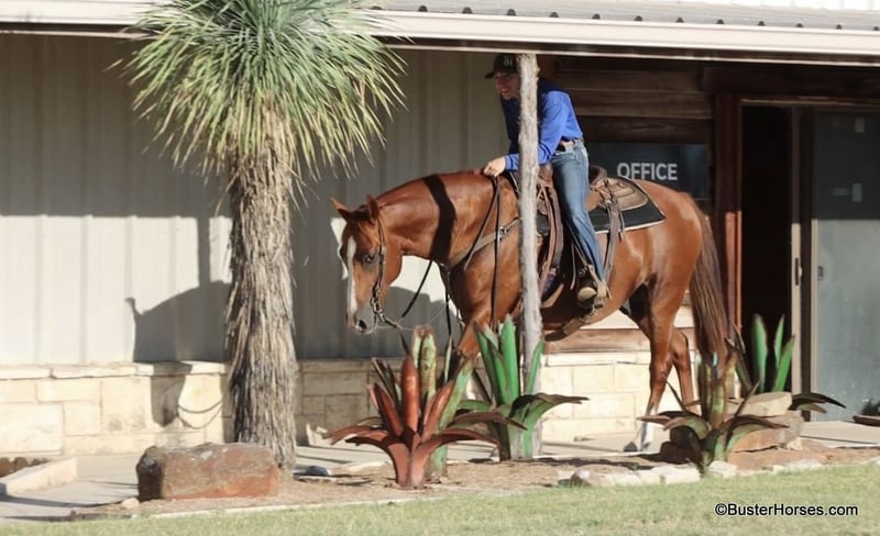 ONLINE AUCTION Place your bids at www.PlatinumEquineAuction.com Starting Bid $3500 Auction ends November 3rd, 2024 Need a new saddle? Check out White Rock Saddles on our website or Facebook! “Payday” – 15.1H, 7 year old sorrel grade quarter horse gelding. Payday is a thick, gorgeous made gelding! He is handy broke and has a ton of feel – huge stop, has all the natural rate you could ask for. He has a nice one-hand uncomplicated ranch horse handle on him, has a nice little smooth jog and lope, nice turnaround and stop – super automatic to work a gate on, if he could run the latch he could open and shut the gate for you while you answered texts on your phone! He rides outside just as well alone as he does with others, he has spent most of his riding miles checking cattle and fences and he is very confident and unphased by riding out alone. Payday has been well started on the sled and as a breakaway horse on live cattle, and he is just the right age to go on and do something big with! His last home he was just a trail riding pet and he’s really fat and out of shape, but just needs legged up and he’s ready to go do any job you have for him! He has a very professional all business disposition like your typical ranch using gelding, but he also has a not as typical sweet/kind personality and enjoys attention and affection. He is low maintenance and an easy keeper – he lives out with our “fat” horses and a donkey, and just gets fed a half bucket of cubes each day. He is happily kept up in a stall too – but he loves living out and he gets along with anyone outside in a group of horses. Payday was just trimmed this past week and he has absolutely excellent feet. His teeth were also just done by an equine dentist last month – and at the same time he had his sheath cleaned, his ears preemptively treated for ticks, and he was also power packed wormed. He will arrive at his new home up-to-date and ready to go to work! To see additional videos, go to our website: BusterHorses.com or our Facebook page Buster Horses. Please call anytime for more information Buster Horses Ashley 214-605-7174 Payday is located in Weatherford, TX – one hour from Dallas / Fort Worth International Airport. He is an easy day trip or fun overnight trip to come try out, from anywhere! We are experienced, knowledgeable sellers, and we can help with quickly arranging affordable shipping to any buyer’s location – we have experience shipping worldwide – including regularly to Hawaii, Canada, Mexico, Europe, and South Africa. ONLINE AUCTION Place your bids at www.PlatinumEquineAuction.com Starting Bid $3500 Auction ends November 3rd, 2024 Need a new saddle? Check out White Rock Saddles on our website or Facebook!