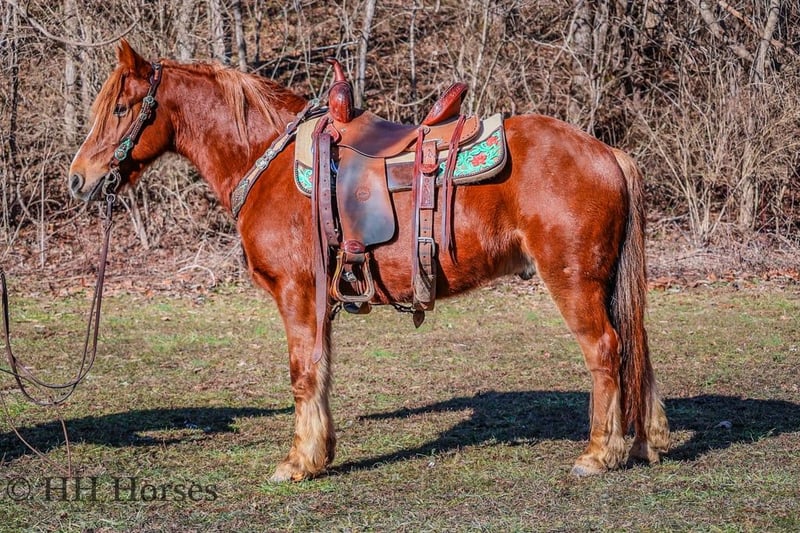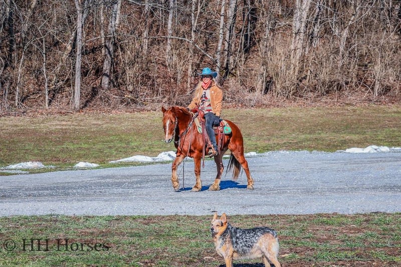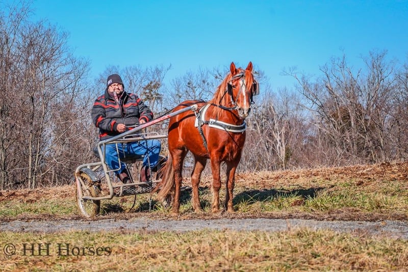 ONLINE AUCTION Place your bids at www.PlatinumEquineAuction.com Starting Bid $3500 Auction ends February 16th, 2025 Need a new saddle? Check out White Rock Saddles on our website or Facebook! This is “DR. DOOLITTLE”, a super cool and fun sorrel QUARTER PONY GELDING that is broke to ride and drive. He stands 13.1 hands tall and is 8 years old. This nice gelding is versatile, well broke, and easy to ride. He has been ridden English and Western in the arena and at the fun shows. He will lope nice collected circles, catch his leads, and stop on whoa. He will back up and move off of leg cues. He will trail ride for any level rider and take care of his mount. He will cross streams quietly and is good with. dogs. He has been on the roads and is traffic safe and not spooky. He stands tied to harness, hitch, tack, mount, and groom. He will also ride with no bridle as shown in the video. He is personable, loves attention, and aims to please. This gelding walks out nicely on a loose rein and will not go any faster than asked. He can be ridden bareback, in just a halter and lead rope, and he also rides double. He doesn’t mind if you want to do tricks with him and he is patient and calm. He handles all four feet with ease, hops right on the trailer, and hauls excellent. He is family friendly and rides out alone with confidence. He is fine in groups as well and will lead or follow. He unloads in new territory and rides off as if he has been there many times. He will make a great addition to anyone’s herd with his willing demeanor, versatile skill set, and his level of training. Don’t miss out of this nice ride if you want uncomplicated and user friendly. Located in Flemingsburg, KY. Contact HH Horses Erin 304-238-4155 with any questions. ONLINE AUCTION Place your bids at www.PlatinumEquineAuction.com Starting Bid $3500 Auction ends February 16th, 2025 Need a new saddle? Check out White Rock Saddles on our website or Facebook!