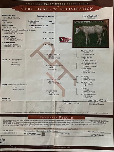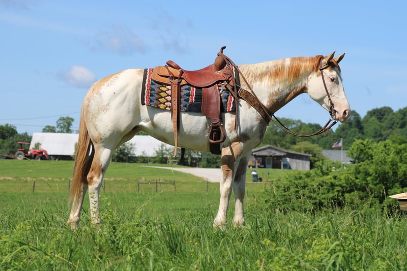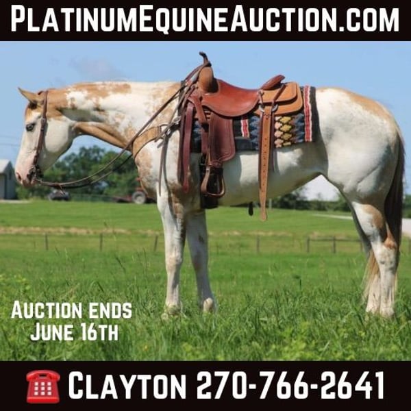 ONLINE AUCTION Place your bids at www.PlatinumEquineAuction.com Starting Bid $3500 Auction ends June 16th, 2024 Need a new saddle? Check out White Rock Saddles on our website or Facebook! Ariel All Time Beauty is a 2017 model Registered APHA mare! She stands 15 hands tall and is built like a tank! She is a beautiful Overo color with a Red Dun/Gold Palomino base. She is super sweet and gentle! She has been through our program and excels at all levels! She will lope around the very best and knows her leads well! She has a great head set and will sit down and stop! Ariel has been ridden a lot outsides and loves the trails and easy rides around the farm! She also does well in the arena with obstacles and will come to the mounting block for mounting! Ariel has beautiful markings and will get you noticed anywhere! She has been ridden by small children as well as adults! She is very laid back and easy to ride! She shoes well and loves to take a bath! She has done the very best with us and took care of our whole family! She has great coloring and is put together like one should be! She is a very safe horse to ride as well as be around! Not pushy or impatient! She is very gentle and loving! If you’re looking for a family horse don’t miss out on this one of a kind and very unique mare! Call Clayton Ryan 270-766-2641 Located in Sonora Ky! ONLINE AUCTION Place your bids at www.PlatinumEquineAuction.com Starting Bid $3500 Auction ends June 16th, 2024 Need a new saddle? Check out White Rock Saddles on our website or Facebook!