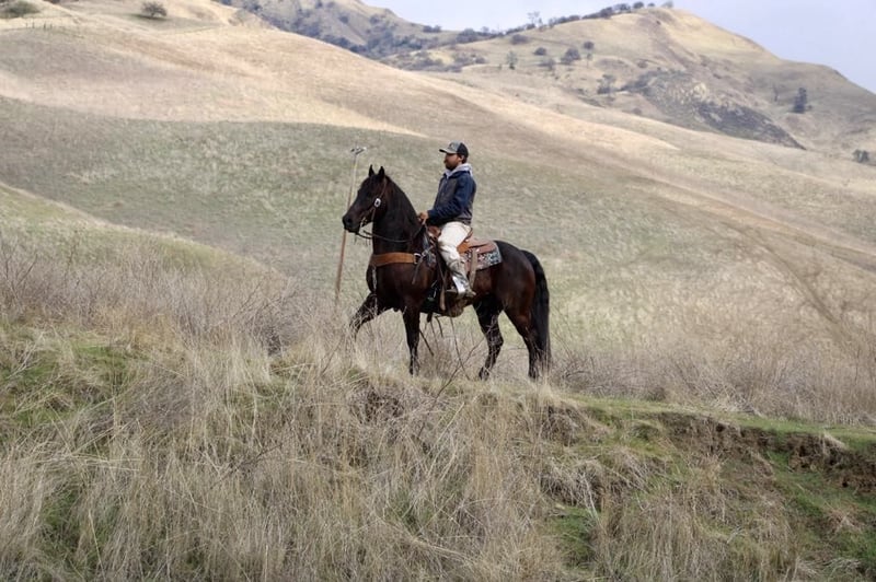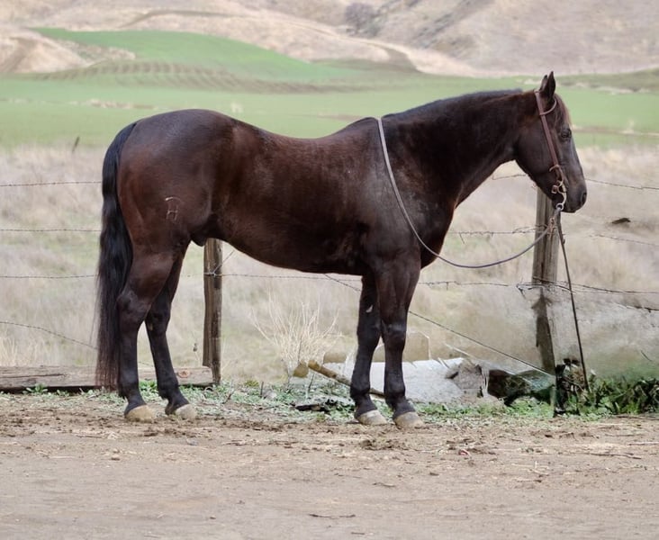 ONLINE AUCTION Place your bids at www.PlatinumEquineAuction.com Starting Bid $3500 Auction ends February 23rd, 2025 Need a new saddle? Check out White Rock Saddles on our website or Facebook! We are super excited and proud to offer this exceptionally versatile gelding, he has been one of our go to horses Andre is a stunning 9-year-old dark black bay gelding standing at 14.3 hands. His captivating dark coat is sure to turn heads wherever he goes. Andre is not only beautiful but also incredibly friendly and loving, making him a delightful companion. Whether it’s being your right hand man roping and working cattle on the ranch, or packing your loved ones safely down the trail he can do it all and does it very well! He rides like a seasoned professional, He crosses logs, large creeks, goes right through mud and thick brush and handles rough and steep terrain with ease. He has been on numerous camping trips. We have jumped on him bareback, rides double. He has also been ridden English and does great and is not spooky or reactive to anything. With a wealth of experience, He has also confidently traversed highways, busy streets, orchards, and areas with heavy machinery. Andre is a true people pleaser, exhibiting a gentle demeanor that makes him suitable for riders of various experience levels. He walks, trots, and can easily pick up his lope, showcasing a soft and natural headset. His well-trained skills include fancy spins and smooth stop and back along with a one-hand neck rein that makes him a breeze to handle. The horse is handy broke. His disposition makes him a joy to ride, whether you prefer a leisurely stroll down the trail or a more demanding day working with cattle. This remarkable horse is not only a safe and steady mount but also a source of joy and companionship. Andre is comfortable in new environments. He is calm during tacking up or at farrier appointments. He hauls beautifully and is comfortable riding in groups or alone, ensuring a worry-free experience for his rider. He stalls or Pastures great stands tied and loads in any trailer. Great for the farrier and vet and easy to groom and bath he can be handled by anyone. Andre is ready for any adventure you have in mind. His beauty and kindness truly brighten each day, making him a blessing to own. For more information about Andre , please contact Longhorn Ranch at Dina 831-537-1915, located in Paicines, Ca. I look forward to speaking with you regarding this stellar boy. ONLINE AUCTION Place your bids at www.PlatinumEquineAuction.com Starting Bid $3500 Auction ends February 23rd, 2025 Need a new saddle? Check out White Rock Saddles on our website or Facebook!