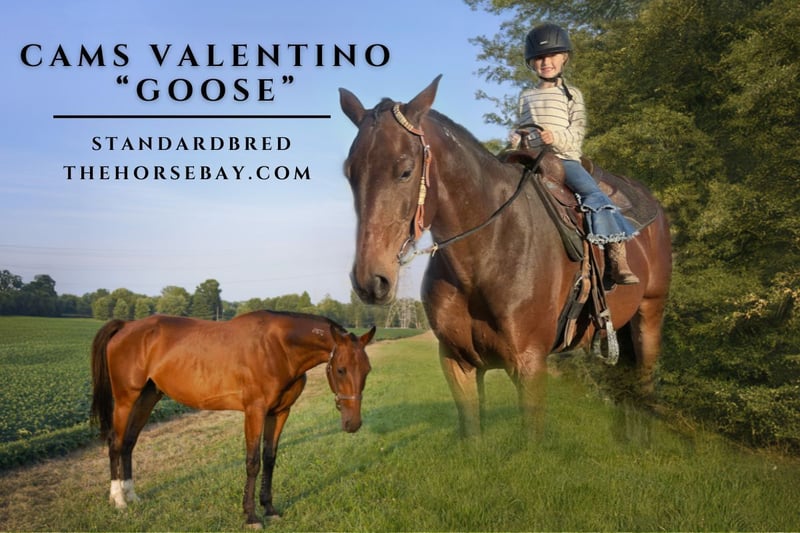 OPEN BIDDING ON THEHORSEBAY,COM. SALE ENDS ON 08/21 @ 3:40PM CT. More information is available on the website, including an UTD vet inspection, Coggins, video, images, and the owner's contact information to ask questions, request information, or make arrangements to come to visit. Goose is a 10-year-old off-the-track Standardbred gelding that stands at 16.2hh. While his racing career was prolific, he has become quite the all-rounder, continuously impressing the farm with everything he tackles. This guy is a well-seasoned trail horse who will happily tote you around a challenging trail or take you into town to get some Taco Bell! He is sure-footed and confident, capable of riding alone on trails, leading a trail ride, or following behind others. He has never offered to rear, buck, or kick and is bombproof! When not on the trails, he gives lessons to kids and adults of all ages and skill levels, participates in parades, and happily goes in the show ring with you. He has been exposed to various farm animals, equipment, vehicles, and wildlife. Bridges and water crossings don’t faze her!
