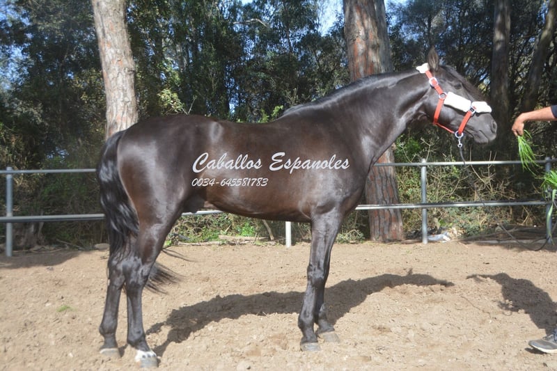 Ten czarny andaluzyjski ogier to uczta dla oczu. Ten fantastyczny czarny ogier jest wyposażony w trzy bardzo dobre podstawowe chody. Chody boczne, piaffe w ręku i hiszpański chód w ręku. Jest pracowity i nieustraszony na arenie, w terenie lub w Romerias. Koń jest sprzedawany na zlecenie. Może zostać z nami w treningu. AKU może być zorganizowane w krótkim czasie. Transport międzynarodowy.