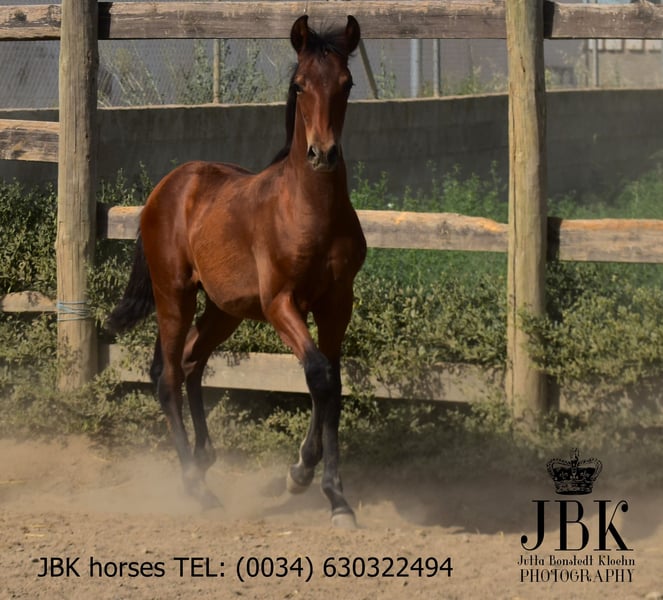 Valentin wurde am 14.02.2025, wie kann er also auch anders heissen? Ein sehr süsser Schatz, mit exzellenten Bewegungen. Seine Mutter ist eine gekörte PRE Stute, ihr Vater ist ebenfalls ein PRE, ist aber nicht gekört, somit hat er seinen EU Pass ohne Rassenachweis. Er kennt jetzt schon das Fohlen ABC gut, hat nie etwas Böses erfahren in seinem bisherigen Leben. Auch in einer Herdenhaltung mit verträglichen Artgenossen benimmt er sich vorbildlich. Wer diesen tollen Kerl fördern möchte, sollte nicht zögern.