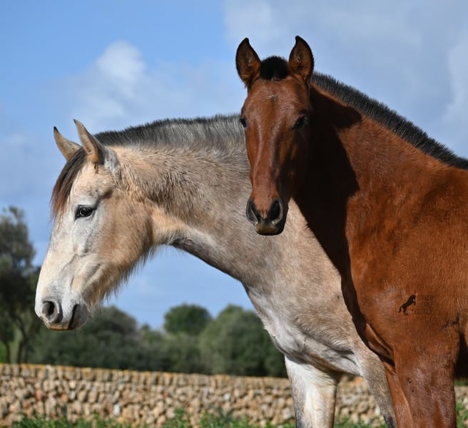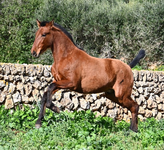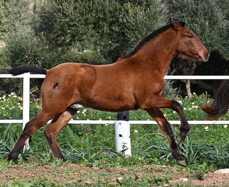 Este potro PRE (Andaluz con certificado de raza de la ANCCE), nacido en verano de 2024, ¡ya es una verdadera belleza! Todavía puede estar con su madre, pero pronto será destetado y en este proceso se busca su hogar para siempre. Vive en un sistema de cría robusto las 24 horas y, gracias a los duros suelos de Menorca, tiene una excelente calidad de casco y está bien conformado. A pesar de su vida robusta, es increíblemente cariñoso y se acerca amistosamente en cuanto uno llega al prado. Su ascendencia hace que los amantes del caballo español se emocionen de inmediato. Por parte paterna, desciende de SENILLOSA, con ESCALERA en sus ancestros. Por parte materna, es nieto de DARTURO III, que proviene de la cría RETAMALES, y su madre también tiene sangre de PLAZA DE ARMAS y CAMPO BAJO. Esta excelente selección de cría se hace notar en él, ya que no solo es hermoso con una cabeza típica de la raza y un exterior barroco, sino que también tiene un gran movimiento que presenta bien a pesar de los suelos pedregosos. Un potro feliz y amigable a un precio justo por esta calidad. Su padre mide 170 cm y él también será un chico más grande. Actualmente se encuentra en Menorca. Videos y ascendencia disponibles a solicitud. Con gusto organizo una revisión veterinaria, transporte o su viaje, si desea venir a verlo en persona. Más detalles en mi página o en conversación. Saludos desde España.