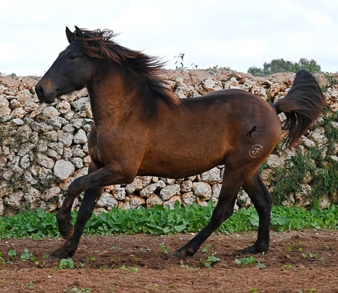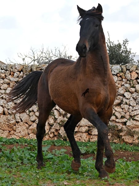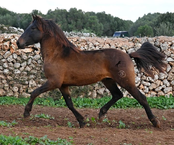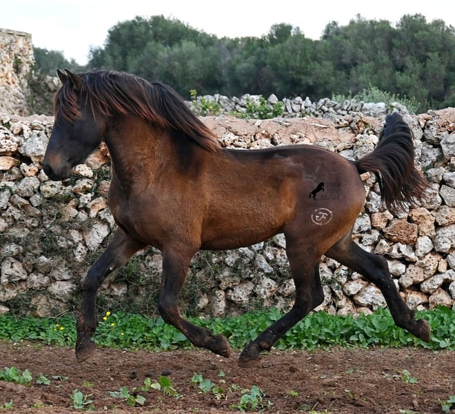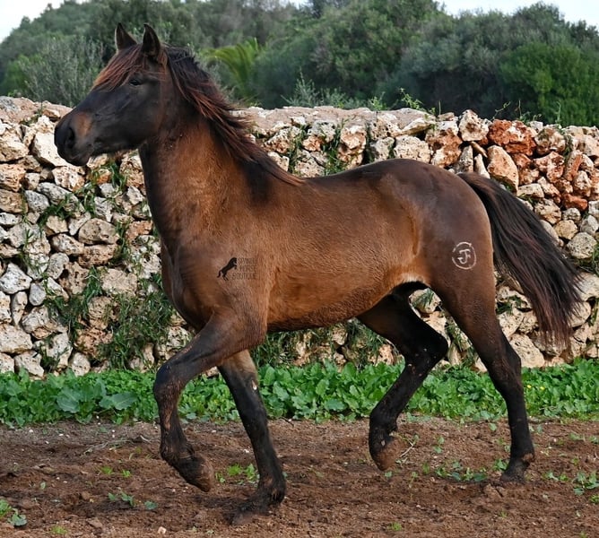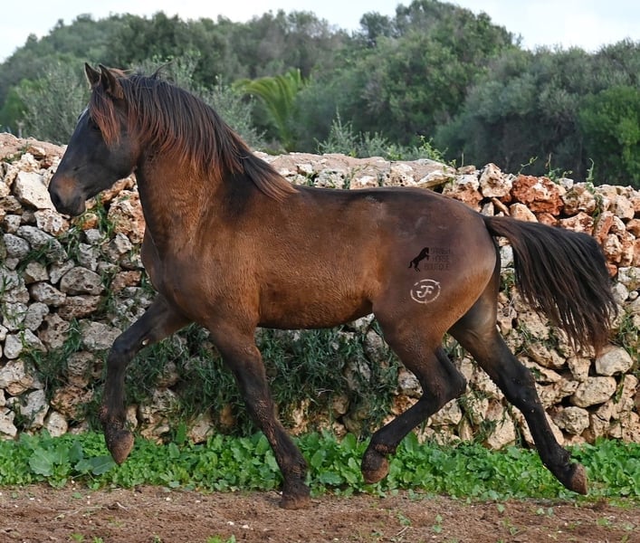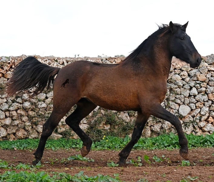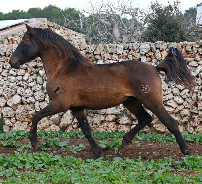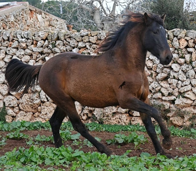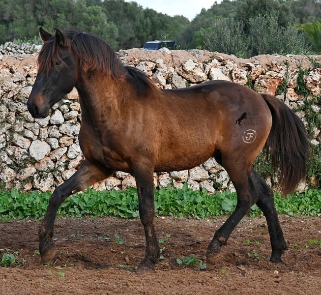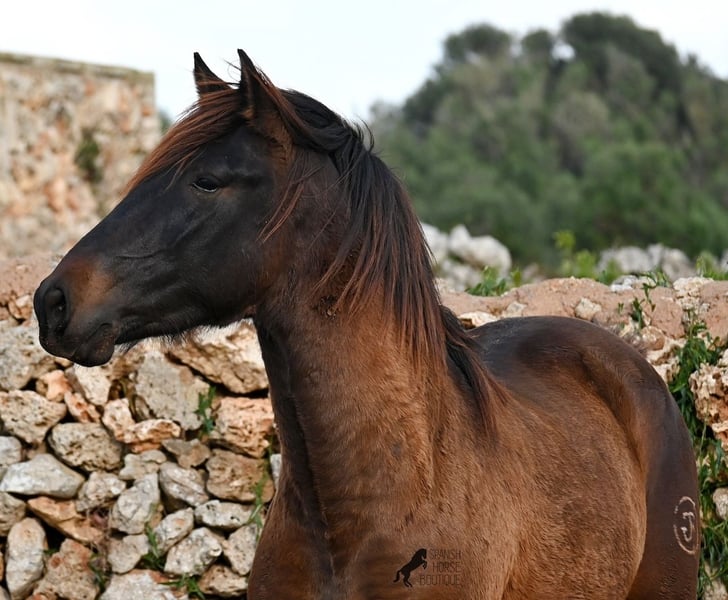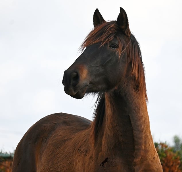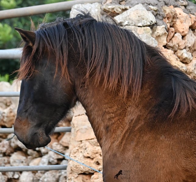 Dieser 2023 geborene PRE Hengst (Andalusier mit Rassenachweis der ANCCE), ist ein wahrer Hingucker. Er hat Charme, Esprit, Ausdruck, ist sehr barock für sein Alter, schwebt aber dabei mit einer Leichtigkeit über den Platz, da braucht man nicht viel Fantasie, wie er sich später im Viereck tun wird. Er ist fast schwarz unter seinem plüschigen Winterfell, mit einem ganz kleinen Stern auf der Stirn, den er meist unterm Schopf versteckt und ein ganz dezentes weißes Abzeichen hat er auf einem Hinterfuß. Sein barockes Exterieur ist jetzt schon beeindruckend und der Junge weiß, dass er gut aussieht, denn er präsentiert sich ganz stolz und zeigt seine beste Bewegung, trotz rutschigem Untergrund. In seiner Abstammung, finden wir viel Escalera Blut und sogar den Mejorante Hengst Dominante XVI. Das typische Feuer, gepaart mit Menschenfreundlichkeit und sanfter Stärke der Escalera, sieht man auch deutlich an ihm. Der Züchter legt großen Wert darauf, dass die Hengste bis mindestens 3 Jahre in der Hengstherde aufwachsen. So kommt es, dass er bei der Regensaison auf Menorca plüschiges Fell und etwas Panier im Fell hat, aber nur ein Indiz auf das natürliche Aufwachsen ;) Mit aktuell 159cm, wird er noch an die 165cm heranwachsen und dabei für viele Sparten interessant werden, da er zwar barock, aber keinerlei schwerfällig ist. Es besteht die Möglichkeit, dass er vor Ort noch antrainiert wird und aufs Reitpferdeleben vorbereitet wird. Für all jene die keinen Hengst halten können, besteht natürlich auch die Option der Kastration vor Ort. Sein Standort ist Menorca. Videos und Abstammung gerne auf Anfrage. Gerne organisiere ich vor Ort eine AKU, Beritt, Kastration, Transport oder auch ihre Reise, sollten Sie persönlich zum Anschauen kommen. Details dazu gerne auf meiner Seite oder im Gespräch. Saludos aus Spanien