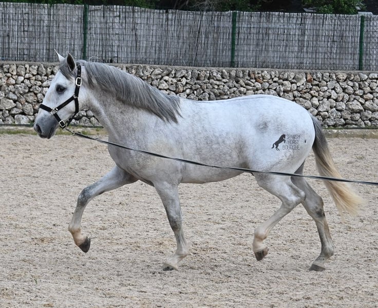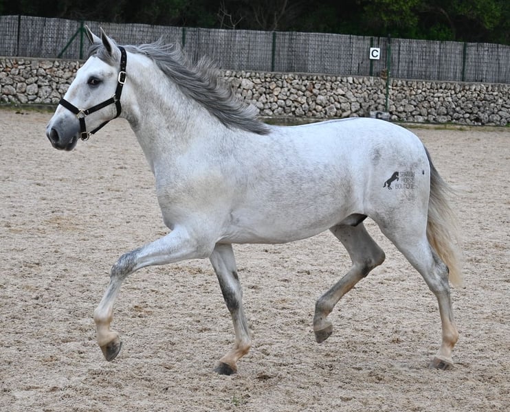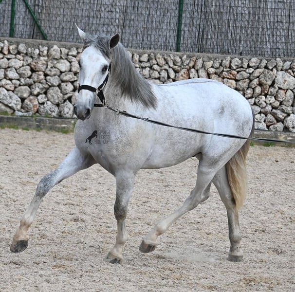 This 2023-born, purebred PRE (Andalusian with pedigree certification from ANCCE) could not have a more noble lineage! His father is the multiple world champion FER BONACHON de Eda, so on his father's side, he could hardly be more exquisitely bred... But the mother's lineage is also exquisite, as she was already successful at breeding shows at a young age and was even crowned Champion Mare of the competition! She is not only a descendant of ARMAS FELINO but also has Campo Bajo blood. The value of careful breeding selection is evident in this high-quality youngster. Champions on both sides of the pedigree provide him not only with breed-typical characteristics but also with good movement. He has already demonstrated this at the breeding show. Thus, he is already accustomed to being loaded, being in new places, and lunging in a halter. Since it is preferred at the breeding show, he is temporarily shod in front but will be transitioned back to barefoot. He also regularly goes to the lungeing machine to build muscle and not just grow taller, as he already measures 160cm and is expected to grow towards 170cm!! For the breeding show preparation, he was taken out of the stallion herd and now lives in a paddock box next to other stallions and is accustomed to having mares nearby – they are already quite interesting for this teenager ;) Price according to quality. His current height is 160cm. He is currently located in Menorca! Videos and pedigree available upon request. I am happy to arrange an AKU (pre-purchase examination), castration, training, transport, or even your trip if you wish to come see him in person. Details can be found on my page or in conversation. Greetings from Spain!