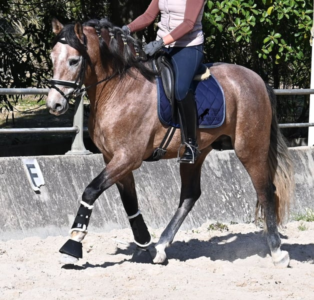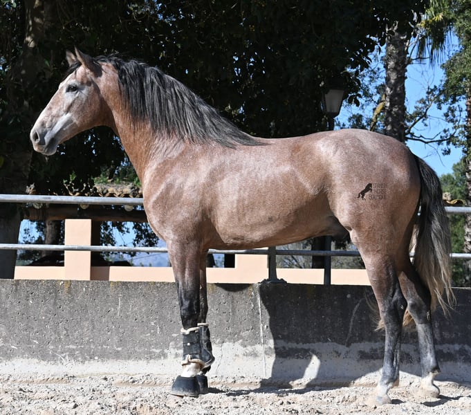 Dieser 2022 geborene, reinrassige PRE Hengst (Andalusier mit Rassenachweis der ANCCE), ist ein ganz besonderes Juwel. Ein königlicher Spanier wie aus dem Bilderbuch, der nur so vor Eleganz, Sanftmut, Lebensfreude und Klasse strahlt. Sein sehr barockes Exterieur, zusammen mit seinem weichen Blick und seinem feinen Kopf, lassen an seiner spanischen Reinheit nicht zweifeln. Kenner des PRE werden beim Anblick seiner Abstammung auch leuchtende Augen bekommen! Der schöne Jüngling ist ein Enkel von FER BAGO von FERRERO (Vater des mehrfachen Weltmeister Fer Bonachon de Eda) und diese Pferde stehen für spanisches Feuer, dass in perfekter Harmonie mit ihrem menschenfreundlichen Charakter gemischt wird. Mütterlicherseits ist er BOHORQUEZ gezogen- barocke Pferde, die klar im Kopf sind und sehr arbeitssam und vielseitig sind. Und diese hervorragende Abstammung, spiegelt sich in diesem Hengst wider- er ist ganz sanft, liebevoll und arbeitssam. Gleichzeitig versprüht er nur so Lebensfreude, die einen direkt ansteckt und so ein Pferd, macht einfach glücklich. Im Umgang ist er ein absoluter Gentleman und könnte sich nicht besser benehmen! Obwohl er noch nicht lange unterm Sattel ist (Winter 2025), muss er vorm Reiten nicht einmal ablongiert werden, weil er so artig ist, dass man direkt loslegen kann. Unterm Sattel ist er genauso ein Gentleman wie im Umgang, tut keinen falschen Schritt und will alles richtig machen. Trotz seines jungen Alters und kurzen Zeit unter dem Reiter, kristallisiert sich schon heraus, er wird ein richtiges Verlasspferd! Mit aktuell 165cm hat er schon eine stolze Größe. Bei dem Züchter leben die Junghengste lang in der Herde und werden langsam und schonend angeritten (doppelt gebrochene Wassertrense). Man merkt auch sofort in seiner Klarheit und Ruhe, dass wirklich alles richtig gemacht wurde in der Aufzucht und wie er gearbeitet/behandelt wird. Er ist gekört, hat aber noch nicht gedeckt. Seine Bewegungen haben Dressurpotenzial und er ist sehr leichtfüßig und biegsam, was bei so barocken Exemplaren, nicht selbstverständlich ist ;) Dass die robuste Aufzucht auch gesund war, wird durch seine Röntgen bestätigt, die alle Klasse 1 sind (Dezember 2025) und selbstverständlich gerne zur Verfügung gestellt werden. Es besteht die Möglichkeit, dass er vor Ort kastriert wird, für alle, die keine Hengste halten können. Der weitere Beritt vor Ort wird auch angeboten. Ein wahres Traumpferd mit gutem Charakter, aus bestem Hause und höchster Qualität. Preis der Qualität entsprechend sehr fair! Sein Standort ist Mallorca. Videos und Abstammung gerne auf Anfrage. Gerne organisiere ich vor Ort eine AKU, Beritt, Kastration, Transport oder auch ihre Reise, sollten Sie persönlich zum Anschauen kommen. Details dazu gerne auf meiner Seite oder im Gespräch. Saludos aus Spanien