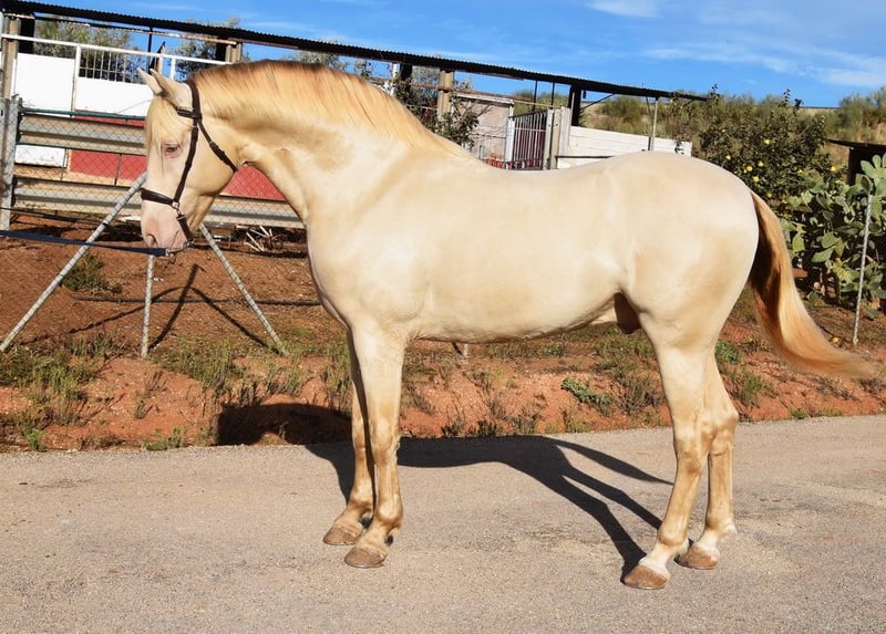 Gentle, calm temperament, curious, affectionate, ridden in basic gaits, lateral movements, extensive trail riding, Romería, Rocío, started in Spanish walk, baroque type, good movements, special color. www.elegante-andalusier.com