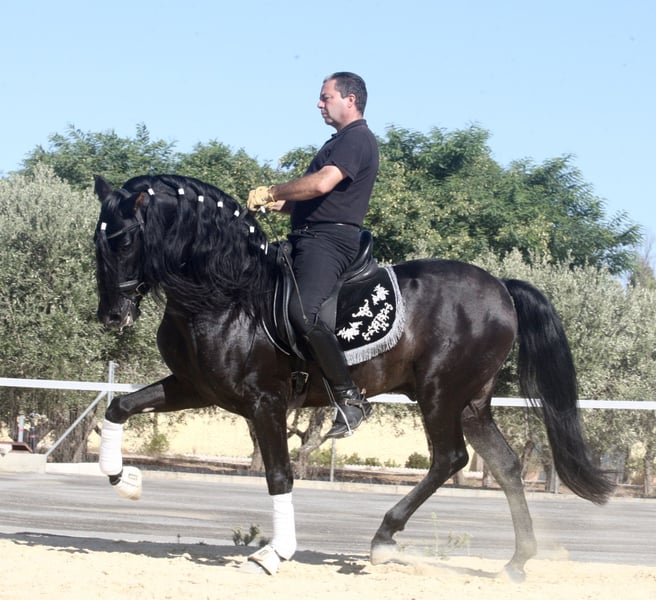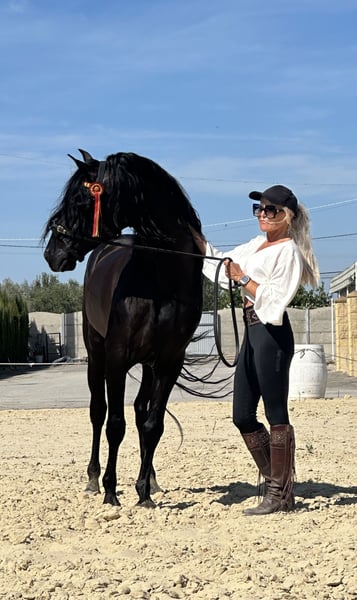 Cheval de rêve noir exceptionnellement beau avec beaucoup de fanons, de magnifiques mouvements et une conformation parfaite ! Facile à monter, calme, et extrêmement proche des humains ! Un ami pour la vie ! Photos et vidéos disponibles !