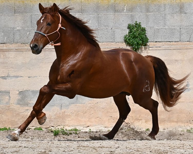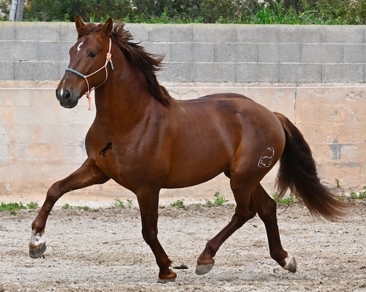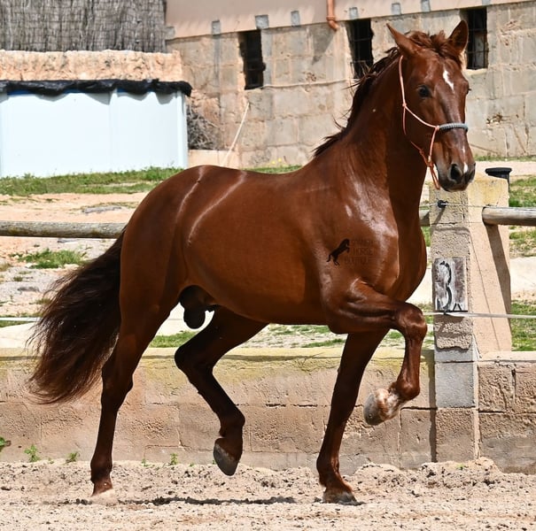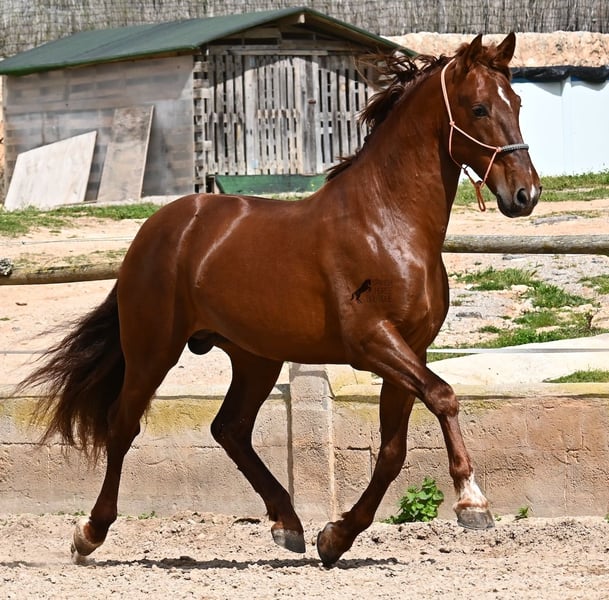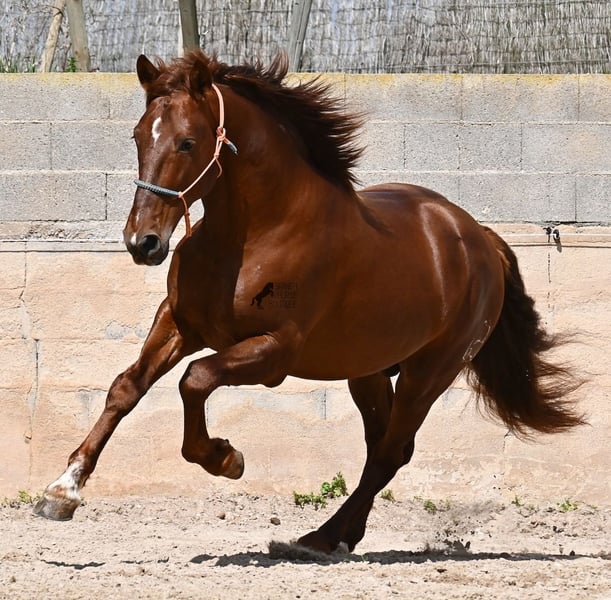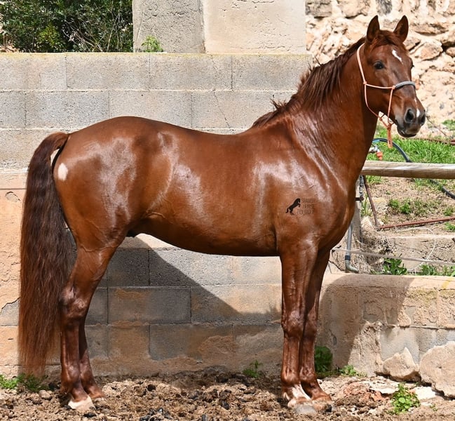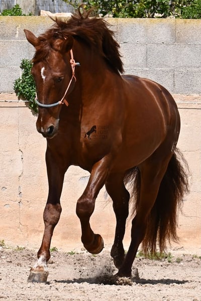 Dieser 2020 geborene PRE Hengst (Andalusier mit Rassenachweis der ANCCE), ist in vielen Aspekten, eine wahre Augenweide! Unumstritten fällt einem als Erstes seine atemberaubende Schöhnheit auf, die der Kupferstich in seinem Fell und der Esprit, nur so verstärken. Doch hinter der schönen Fassade, gibt es einiges mehr zu entdecken. Seine Abstammung ist superior, denn er ist ein Sohn des mehrfachen WELTCHAMPION Fer Bonachon de Eda und somit ein Enkel des berühmten Fer Bago. In seiner Abstammung finden wir nicht nur den Weltchampion und somit die FERRERO Linie, sondern auch Monis, Marin Garcia, Yeguada Militar, Guardiola und Bohorquez! Mütterlicherseits hat er Rappen, Füchse und Braune in der Abstammung, was ihn auch als Zuchthengst sehr interessant macht, da die meisten Bonachon-Kinder dem Vater als Schimmel gleichen und er diese TOP Linie vererbt, mit mehr Option auf farbige Nachzucht. Er ist gekört und hat bereits eine Nachzucht- ebenso ein Fuchs, was bestätigt, dass er farblich als Zuchthengst, nebst der Abstammung, mehr als interessant ist. Im Handling ist er ein absoluter Gentleman und obwohl er schon gedeckt hat, überhaupt nicht heiß oder hengstig. Sollte Hengsthaltung nicht möglich sein, bestände selbstverständlich die Option der Kastration vor Ort. Ambitionierte Reiter werden definitiv Spass an ihm haben, denn er lernt schnell und unter dem Reiter will er alles geben und taut so richtig auf. Auch unterm Sattel zeigt er absolut keine Unarten und ist unermüdlich. Wo andere PRE nach 15´sagen bitte fertig, taut er erst richtig auf und gibt alles. Seine Haltung ist auch ideal, was sich in seinem ausgeglichenen Wesen widerspiegelt. Er ist tagsüber frei auf dem Paddock, nachts zum Ruhen in der Box, wird 3x die Woche geritten und das meist im Gelände! Er ist im Gelände ein absolutes Verlasspferd und unerschrocken, egal ob alleine oder in Begleitung. Sei es Baumaschinen oder LKWs die an ihm vorbeirasen, er bleibt cool und marschiert weiter! Stundenlange Ausritte gefallen ihm auch gut, da kann er seine Ausdauer so richtig unter Beweis stellen. Am Platz ist er absolut fokussiert und beherrscht Seitengänge in allen Gangarten und hat schon genügend Gleichgewicht für große Runden im Außengalopp. An der Hand wird ihm gerade der spanische Schritt beigebracht. Ein wunderschöner, liebevoller und erzogener Hengst, mit viel Potenzial in diversen Sparten, der das Auge und das Herz erfreut! Preis der Qualität entsprechend. Sein aktuelles Stockmaß liegt bei 160cm. Aktuell steht er auf Mallorca! Videos und Abstammung gerne auf Anfrage. Gerne organisiere ich vor Ort eine AKU, Kastration, Beritt, Transport oder auch ihre Reise, sollten Sie persönlich zum Anschauen kommen. Details dazu gerne auf meiner Seite oder im Gespräch. Saludos aus Spanien