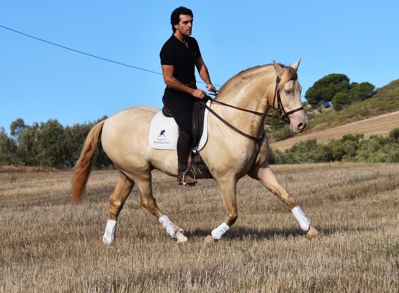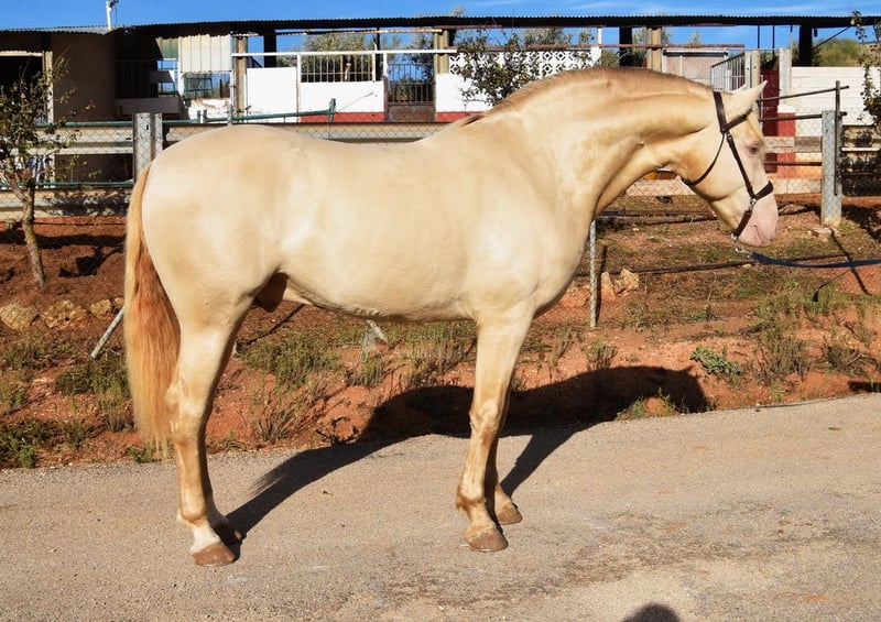 Caractère doux et calme, curieux, affectueux, monté en allures de base, passages latéraux, beaucoup de terrain, Romería, Rocío, débuté en pas espagnol, baroque, bons mouvements, couleur spéciale www.elegante-andalusier.com