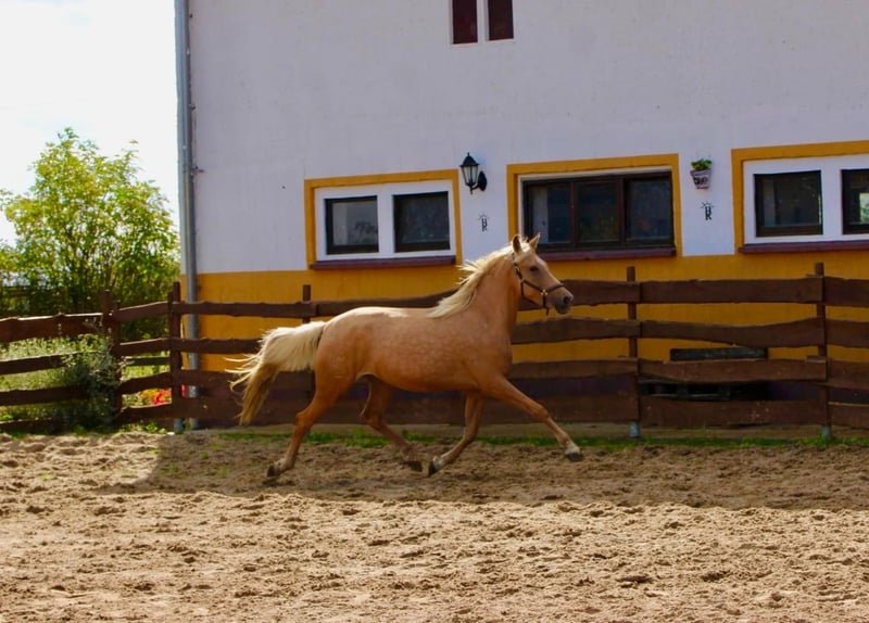 **Verkaufsanzeige: Andalusier Stute** Zum Verkauf steht eine wunderschöne Andalusier Stute, geboren im Jahr 2021. Sie präsentiert sich in einem strahlenden Palomino-Fell und hat ein Stockmaß von 164 cm. Diese talentierte Stute wird dieses Jahr 4 Jahre alt. Ihr freundliches und aufgeschlossenes Wesen macht sie zu einem idealen Partner für Reiter, die sowohl an der Arbeit mit dem Pferd als auch an der Entwicklung ihrer Fähigkeiten interessiert sind. Sie ist gut im Umgang, brav im Stall und hat einen ausgeglichenen Charakter. Diese Stute sucht ein neues Zuhause, wo sie gefördert werden kann. Bei Interesse oder weiteren Fragen stehe ich Ihnen gerne zur Verfügung. Besuchen Sie uns und überzeugen Sie sich selbst von dieser charmanten Andalusier Stute!