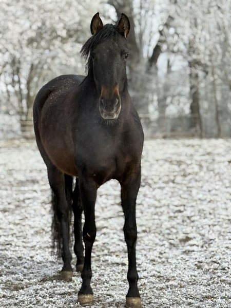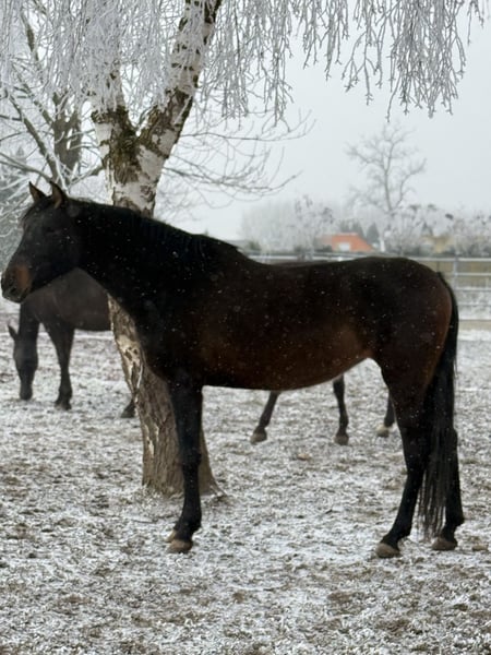 „MÖNCHHOFS JAMAICA“ Eine PRE-Stute mit Ausstrahlung & Herz aus 25 Jahren Spitzenzucht Pura Raza Española , Stute , 6 Jahre , ca. 1,63 m M: Juiciosa V: LL Farolero I (100% Cartujano) Manche Pferde betreten den Platz und es wird still, weil alle hinschauen. Diese PRE-Stute ist genau so ein Pferd: ausdrucksstark, elegant und dabei unglaublich freundlich und menschenbezogen. Ein Charakter, der nicht nur beeindruckt, sondern berührt. Sie ist in der Herde geboren und aufgewachsen und bringt dadurch eine stabile, soziale Grundlage mit. Im Umgang zeigt sie sich sehr angenehm, zugewandt und aufmerksam, ein Pferd, das den Kontakt zum Menschen sucht und dabei mit feiner Art überzeugt. Optisch ein echter Blickfang: sehr schöne Halsung, ein harmonischer Körperbau und ein elegantes, schwungvolles Gangwerk, das typisch PRE ist, mit Präsenz und natürlicher Ausdruckskraft. Aus unserer eigenen Zucht des Gestüts Mönchhof Hinter dieser Stute steht Erfahrung und Leidenschaft: 25 Jahre PRE-Zucht „Gestüt Mönchhof“. Eine Linie, auf die man stolz sein kann und ein Pferd, das genau das widerspiegelt: Qualität, Rassetyp und Charakter. Perspektive & Einsatzmöglichkeiten Mit ihrem Top-Charakter ist sie ein zukünftiges Reitpferd sowohl für die Freizeit als auch für ambitionierte Reiter/innen, die ein feines, rittiges Pferd mit Ausstrahlung suchen. Sie bringt alles mit, um sich mit der richtigen Förderung zu einem zuverlässigen Partner zu entwickeln, einem Pferd, das man nicht nur reitet, sondern wirklich an seiner Seite hat. Haltung Sie kennt sowohl Offenstall als auch Box mit Paddock und zeigt sich in beiden Haltungsformen unkompliziert. Wichtig: Beritt & Preis Die Stute kommt ab März in professionellen Beritt. Bis dahin gilt der aktuell angegebene Preis in der Anzeige. Mit zunehmender Ausbildung und Fortschritt wird der Preis entsprechend steigen. Wer sich früh entscheidet, sichert sich nicht nur den Preis, sondern begleitet auch eine spannende Entwicklung von Anfang an. Es besteht auch die Möglichkeit die Stute zur weiteren Ausbildung bei uns zu lassen. Wenn du ein Pferd suchst, das Eleganz, Rasse und Charakter vereint und bei dem man schon heute spürt, was morgen möglich ist, dann ist diese PRE-Stute eine ganz besondere Gelegenheit. Ernsthafte Anfragen bitte mit kurzer Vorstellung (Reiterfahrung, Haltung, Wunsch-Einsatz). Nur in fördernde Hände. Für einen Besuchstermin mit Vorführen am Boden berechnen wir 30€, welche beim Kauf des Pferdes selbstverständlich erstattet werden.