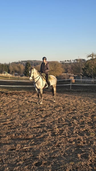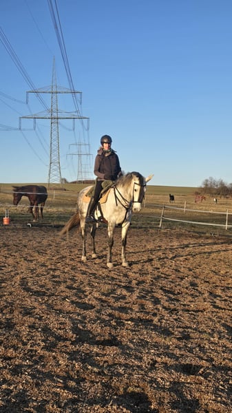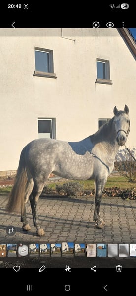 Wir verkaufen eine bildhübsche Andalusierstute. Tormenta ist 8 Jahre alt und hat eine Größe von 1,60m. Sie ist sehr rittig ob im Gelände oder auf dem Platz. Tormenta ist eine Stute die jedem gefallen möchte unter dem Sattel und das zeigt sie auch. Wir haben angefangen mit ihr Seitengänge zu reiten was sie sehr schnell lernt. Sie ist am Anfang ihrer reiterlichen Karriere und ich denke sie passt gut in die working ecquitation aber auch als gehobenes Freizeitpferd. Tormenta lebt bei uns im Offenstall in einer gemischten Herde. Wenn sie euer Interesse geweckt hat dann schreibt mir oder ruft einfach an 0163 9840641 da kann ich alle weiteren Fragen beantworten