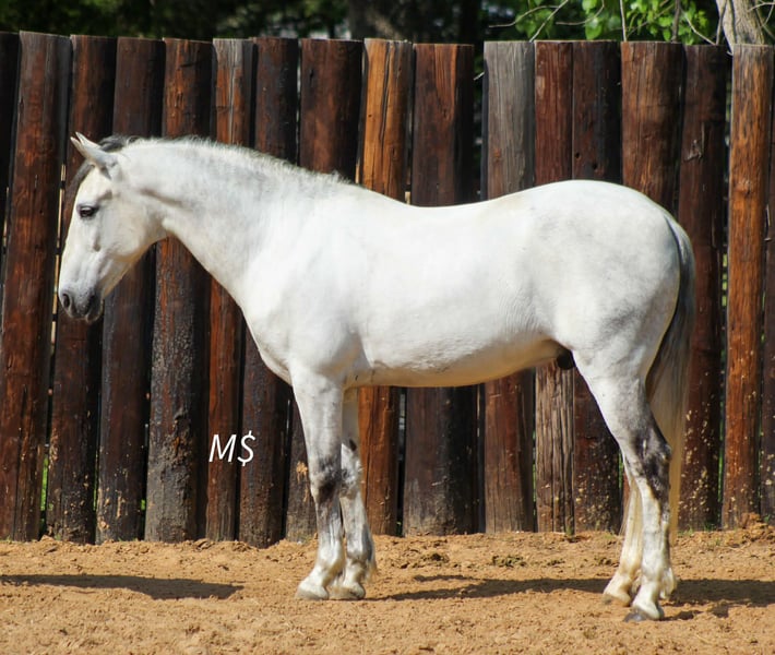 "AVAILABLE ON ONLINE HORSE AUCTION AT www DOT PlatinumEquineAuction DOT com BIDDING OPEN NOW thru SUNDAY | APRIL 26TH! *Final price will be determined on auction site* CONSIGNOR CONTACT INFO: M $ Performance Horses & Ponies 661-817-9120 LOCATION: Whitesboro, TX Patron is a stunning 10-year-old grey Andalusian gelding standing 14.2 hands tall. This kind-natured gelding has been part of a drill team and is primarily an arena horse, though he’s also been used outside for gathering cattle and enjoys trail rides. Patron has a little extra pep in his step, making him a fun, forward-moving ride. He’s brave, willing, and goes wherever you point him without hesitation. Traffic safe and confident, he’ll cross tarps, logs, and handle hills with ease. In the arena, he’s a gorgeous mover with smooth, floating gaits. He walks, trots, and lopes nice circles with easy, clean transitions. On the ground, he’s a true gentleman—stands tied quietly, good for the farrier, and loads and unloads with no trouble. Patron is the total package: kind, capable, and easy on the eyes. Located in Whitesboro,Texas We are open to anyone interested in him to schedule a time to come see him or if you can’t make it schedule a FaceTime showing to see him. 661-817-9120 call or text for more info. If you need help with transport don’t hesitate to ask we have a list of reputable haulers that can get him safely to your doorstep WORLD WIDE including, Alaska , Mexico, Hawaii, Canada and anywhere in between.