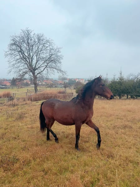 Ich verkaufe meinen wunderschönen Wallach. Er ist erst 1,5 Jahre (wird im März 2) und bereits jetzt eine barocke Erscheinung, mit kräftigen Fundament und harmonischen Linien. Aber nicht nur sein Äußeres ist von Noblesse geprägt, sondern auch sein innerstes. Er ist ein höflicher Kerl, der keinen Stress möchte und bereits in dem zarten Alter versucht zu verstehen und alles richtig machen möchte. Auch wenn er aufgeregt ist, nimmt er die Orientierung des Menschen an und stellt sich mutig neuen Herausforderungen. Er kennt es alleine spazieren zu gehen und auch in der Gruppe. Wir gehen raus in Verkehr und Natur und er lernt alle möglichen Reize kennen und verspricht ein wunderbarer Begleiter zu werden. Er ist eher abwartend und ruhig, kann aber auch gut aktiviert werden und ist keine faule Socke. Auch jugendliche Kinder konnten ihn im Straßenverkehr bereits führen. Er ist rangniedrig und äußerst sozial gegenüber Mensch und Pferd. Er ist Tetanus geimpft und regelmäßig entwurmt. Er entstammt der Yeguada Militar Linie, reist aber mit Pass.
