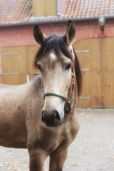 Manchmal trifft man ein Pferd, das einfach alles hat – diesen besonderen Ausdruck, dieses liebevolle Wesen und das gewisse Etwas, das einen sofort berührt. Genau so ist dieser junge Iberer, ein wunderschöner Mix aus Lusitano und Spanier, gerade einmal 3 Jahre alt und schon jetzt ein echter Hingucker! Seine Sonderfarbe Buckskin schimmert im Sonnenlicht, und sein zuckersüßes Gesicht bringt jeden zum Schmelzen. Mit aktuell 1,57 m Stockmaß wächst er noch ein wenig und zeigt sich dabei immer freundlich, neugierig und menschenbezogen. Er ist gesund, klar im Kopf und bereit, die Welt zu entdecken – ob als zukünftiger Reitpartner, Freizeitpferd oder Dressurdiamant. Ein Pferd, das nicht nur schön ist, sondern mit seinem Wesen mitten ins Herz trifft. 💛 Einfach anschauen – und verlieben.