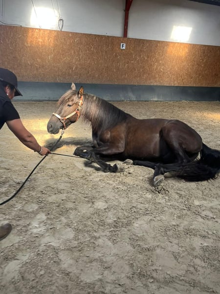 Deze knappe, glanzzwart Andalusiërhengst werd geboren in 2021 en meet momenteel ongeveer 1,60 m. Hij valt op door zijn correcte bouw, zijn elegante uitstraling en vooral door zijn bijzonder vriendelijke karakter. Mensen toont hij zeer betrokken, vriendelijk, speels en open. Ondanks zijn jonge leeftijd is hij al opmerkelijk rustig in de omgang en altijd braaf – zowel bij de dierenarts als bij de hoefsmid. Hij is regelmatig ontwormd en gevaccineerd, beschikt over een paspoort en is vertrouwd met verschillende huisvestingsvormen, waaronder boxen met weidegang en groepshuisvesting. Hij is nog in ontwikkeling, passend bij zijn leeftijd, maar is al speels en met veel geduld onder het zadel gebracht. Onder het zadel toont hij leergierig, attent en veelzijdig inzetbaar. Hij heeft al ervaring opgedaan in het buitenrijden en op de weg en heeft deze soepel doorstaan. Daarnaast zijn eerste lessen in grondwerk en de discipline van de zirkeltraining met hem ontwikkeld – het behendigheidsspel beheerst hij al, het zittend maken is momenteel in opbouw, en ook de piaffe is voorzichtig geïntroduceerd. Deze jonge hengst beschikt over alle eigenschappen om uit te groeien tot een betrouwbare partner. Hij is vooral geschikt voor ruiters die met geduld en gevoel een jong paard willen verder opleiden en samen willen groeien.