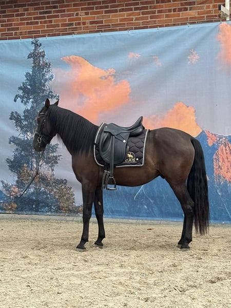 Dieser bildhübsche, lackschwarze Andalusier-Wallach wurde 2021 geboren und misst aktuell etwa 160 cm. Er besticht durch sein korrektes Gebäude, seine elegante Erscheinung und vor allem durch seinen besonders lieben Charakter. Menschen gegenüber zeigt er sich sehr zugewandt, freundlich, verspielt und aufgeschlossen. Trotz seines jungen Alters ist er bereits erstaunlich cool im Umgang und stets brav - sowohl beim Tierarzt als auch beim Hufschmied. Er wurde regelmäßig entwurmt und geimpft, besitzt einen Pass und ist mit verschiedenen Haltungsformen vertraut, darunter Boxenhaltung mit Weidegang sowie Herdenhaltung. Er befindet sich altersgerecht noch in der Entwicklung, wurde aber bereits spielerisch und mit viel Geduld angeritten. Unter dem Sattel zeigt er sich lernwillig, aufmerksam und vielseitig einsetzbar. Erste Erfahrungen im Gelände und auf der Straße konnte er bereits sammeln und hat diese souverän gemeistert. Zusätzlich wurden mit ihm erste Lektionen aus der Bodenarbeit und dem Bereich der Zirzensik erarbeitet - das Kompliment beherrscht er bereits, das Hinsetzen befindet sich aktuell im Aufbau, und auch an die Piaffe wurde er behutsam herangeführt. Dieser junge Wallach bringt alle Voraussetzungen mit, um sich zu einem verlässlichen Partner zu entwickeln. Er eignet sich besonders für Reiter, die Freude daran haben, ein junges Pferd mit Geduld und Gefühl weiter auszubilden und gemeinsam zu wachsen.