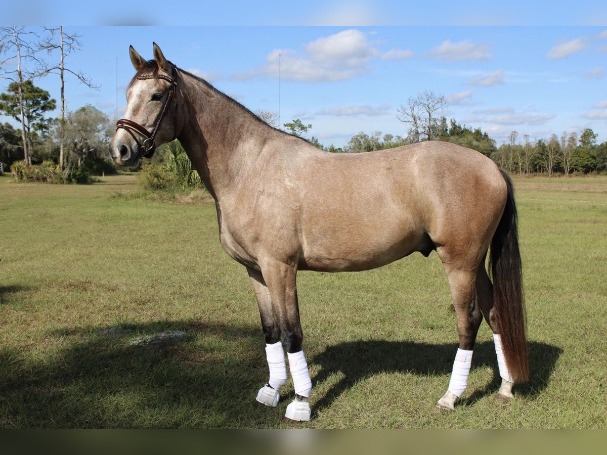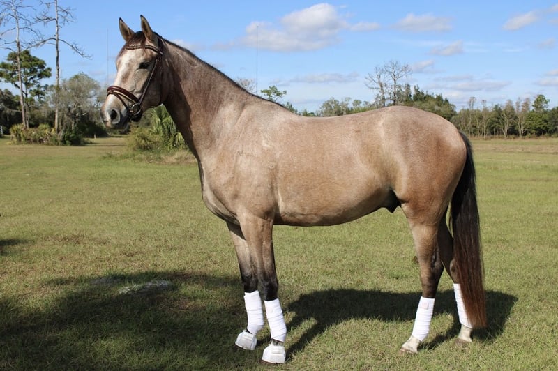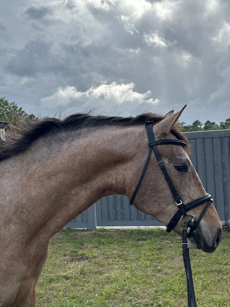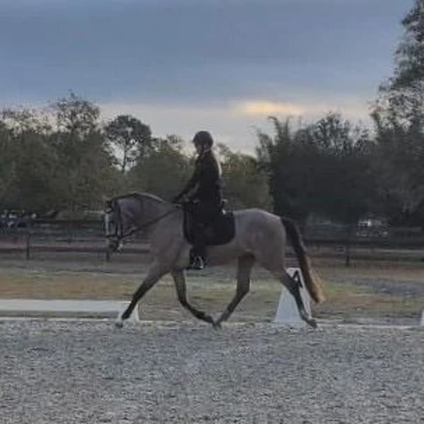 "AVAILABLE ON ONLINE HORSE AUCTION AT www DOT PlatinumEquineAuction DOT com BIDDING OPEN NOW thru SUNDAY | MAY 3RD! *Final price will be determined on auction site* CONSIGNOR CONTACT INFO: Rebecca Rodriguez 407-496-0088 LOCATION: Orlando, FL "Theo" is a 2022 Hanoverian x PRE standing currently at 15.3 hands, breeder expects he will to mature at 16.2 hands. He is Grey (born bay will grey out like sire) registered Oldenburg with German Pink papers by Tomillo VII (GrandPrix PRE) out of a Bugatti Hilltop x Londontime mare (HANN) bred for FEI. He has been in professional dressage training since January 2026 with a gold medalist FEI trainer and currently schools 1st level with introductions to some 2nd level concepts, also shows talent, desire, and good technique for jumping and could make a fun eventing prospect due to his bold personality. Theo is energetic, light to the aids, sensitive, and has a soft mouth. When on the aids he is a lovely ride and has naturally comfortable gaits, but he will test the rider from time to time so at this time due to his age (4yr old) and experience he needs a confident, experienced rider with an independent seat and hands. He also prefers a varied program and can become bored and sour with too much repetition. No prep to ride - just tack up and hop on! He is currently barefoot and happy to be turned out alone or with other horses. For More Information Contact Rebecca at 407-496-0088.